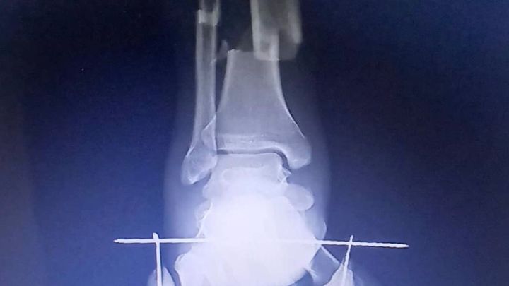 Como resultado del accidente, sufrí una fractura cerrada de tibia y peroné. Fui ingresado en un hospital público, donde me realizaron una primera cirugía y colocaron material de osteosíntesis para estabilizar mis huesos.