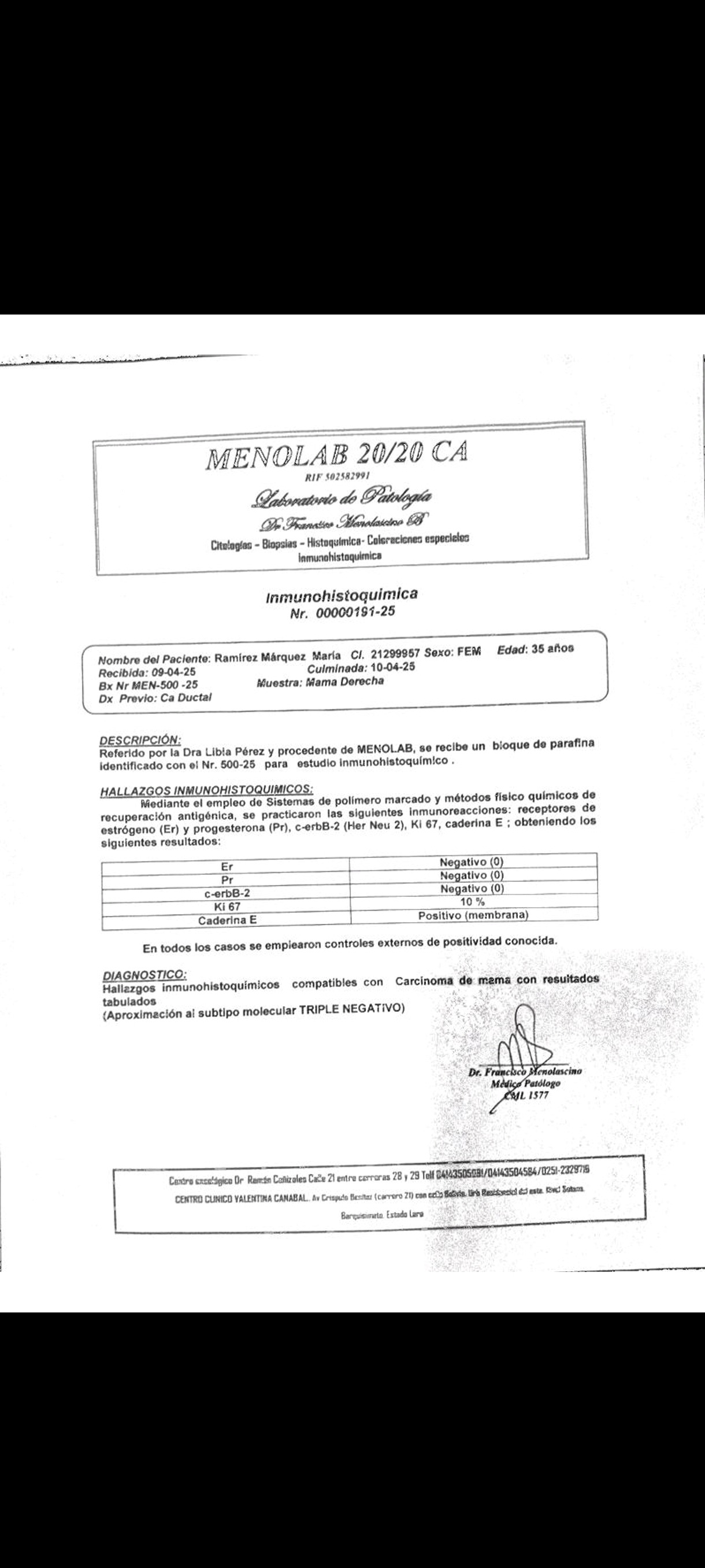 A principios de este año, le diagnosticaron un tipo de cáncer de mama que es resistente a la mayoría de los tratamientos convencionales y es extremadamente agresivo. Se llama carcinoma ductal invasivo triple negativo y requiere un tratamiento urgente.