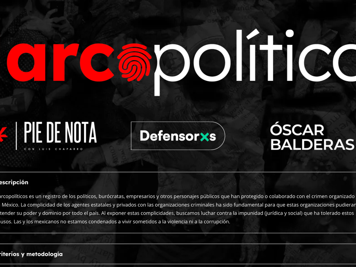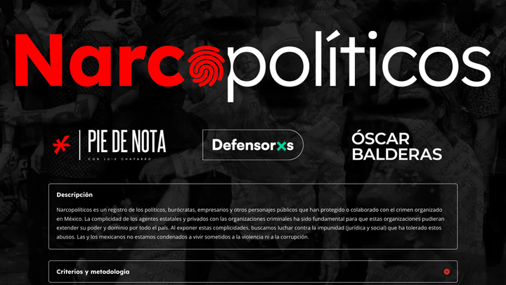 Con los periodistas Óscar Balderas y Luis Chaparro (Pie de Nota), así como la asociación civil Defensorxs, iniciamos Narcopolíticos, un registro de los políticos, burócratas, empresarios y otros personajes públicos que han protegido o colaborado con el crimen organizado en México.