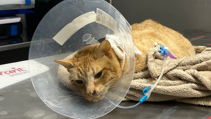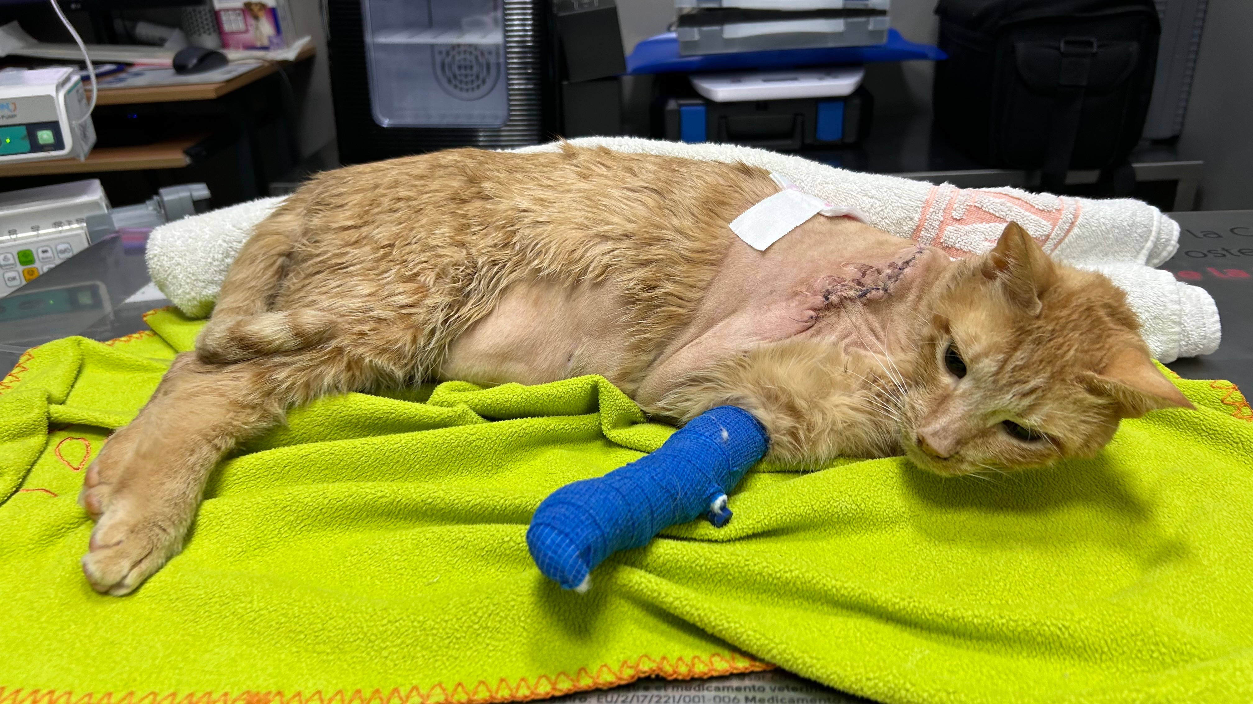 Hola!! Me llamo Natàlia y tengo 20 años. Mi gato Canelo, al que adopté en 2022 en l'Asociación Animalista de Centelles, ha sufrido un grave accidente y lleva desde el 13 de julio ingresado en la clínica veterinaria. Tras perder la sensibilidad de su patita, finalmente han tenido que amputarsela. Está luchando muchísimo por salir adelante, pero los gastos veterinarios ya superan los 4200 € y no puedo afrontarlos sola.