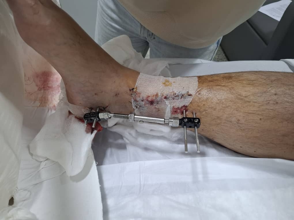 3. Fractura conminuta expuesta de ⅓ distal de tibia y peroné derecho complicado con pérdida ósea y muscular.