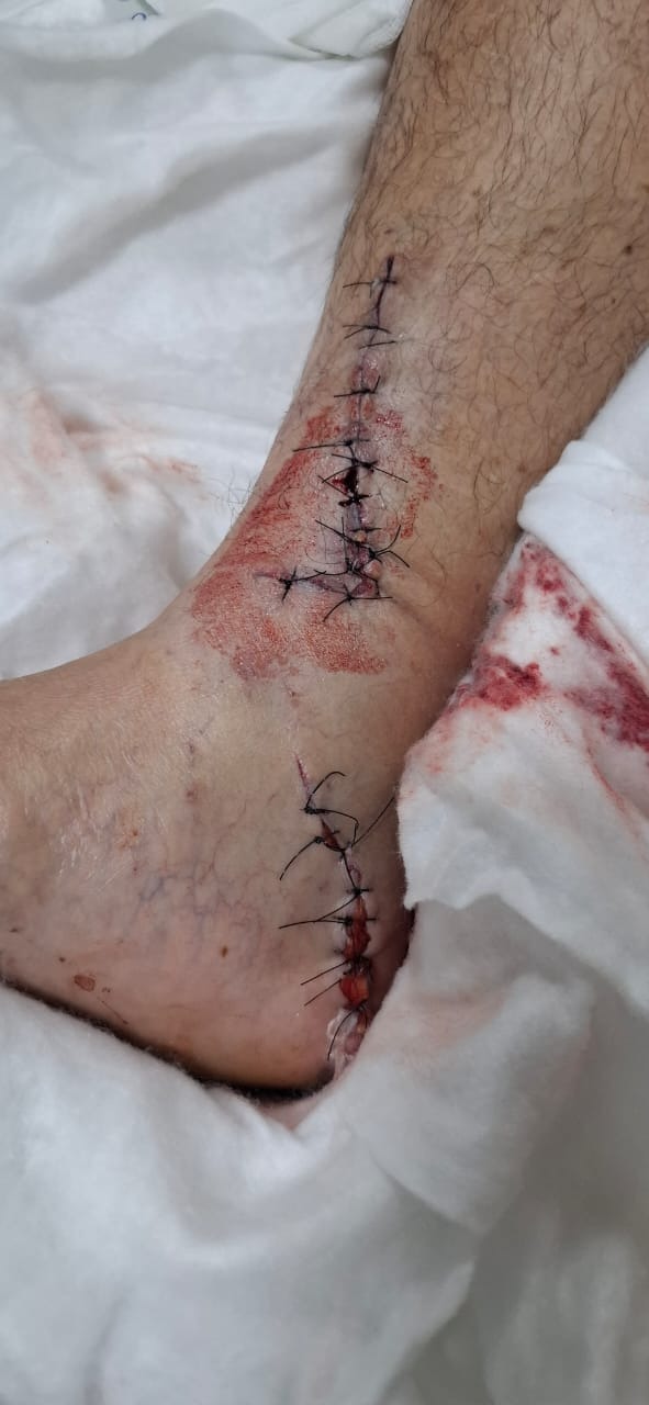 4. Herida anfractuosa en cara medial del calcáneo derecho complicado con exposición tendinosa del tendón aquiles.