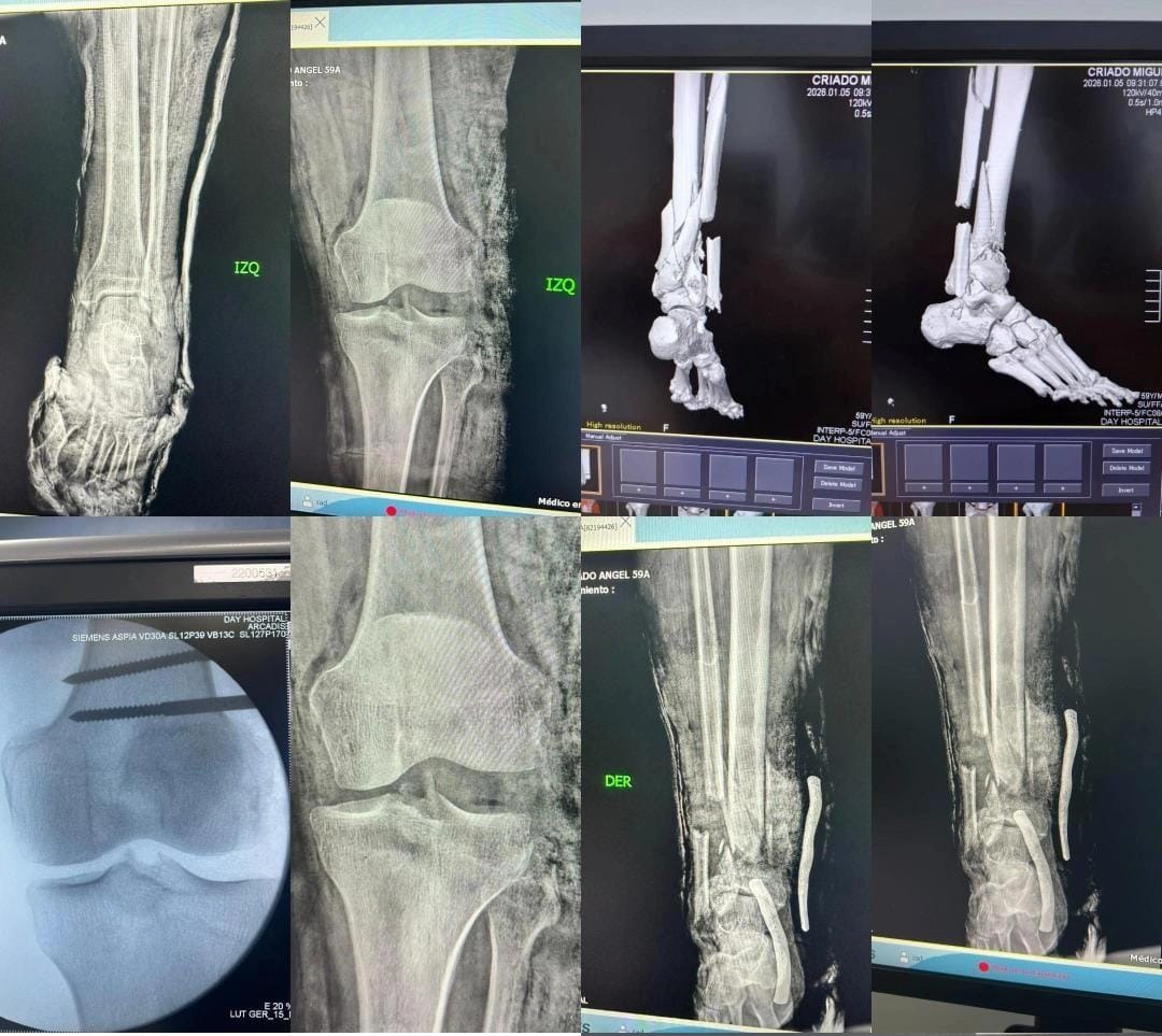 Actualmente no se han hecho responsables en su totalidad de los costos de la recuperación, los cuales incluyen: Tratamiento por infección (debido a la fractura abierta). Futura reconstrucción de ligamentos y tendones en la rodilla izquierda. Cirugías de reconstrucción en tibia, peroné y talón derecho. Insumos médicos, honorarios de traumatólogos, infectologos y enfermería, etc. Mi padre se encuentra en cama con un tutor, placa y 16 tornillos en la pierna derecha, y un tutor en la rodilla izquierda el cual debería ser retirado a más tardar esta semana. Mi papá estuvo hospitalizado por 6 días en el Day Hospital en Lechería, durante esos días el hotel se hizo responsable de los gastos en su totalidad incluyendo las dos veces que entró al quirófano, hasta que nos regresamos a Caracas el día 9 de enero en ambulancia. Los costos para salvar sus piernas son sumamente elevados y superan nuestras posibilidades.