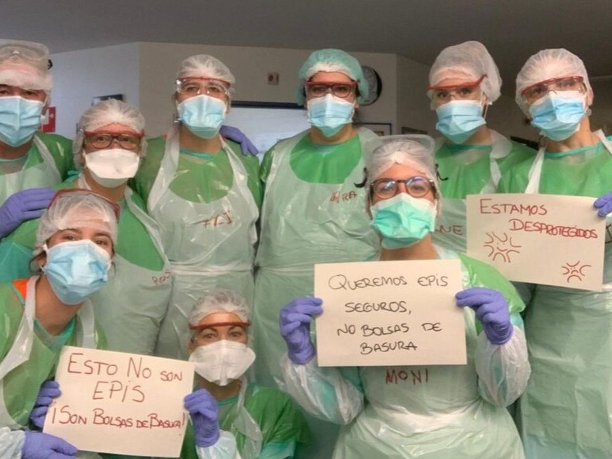 Los hospitales están saturados y sufren la falta de material imprescindible para luchar contra el virus. Entre ellos, el Hospital de Getafe. La situación es conocida por todos: UCIs improvisadas, chubasqueros, bolsas de plástico, esparadrapo... Ante la falta de EPIS, los enfermeros tienen que utilizar lo que tienen a mano para crear su propia vestimenta.