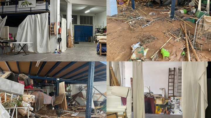 Este taller ha sido mi hogar desde 1998, y el lugar donde, junto a otros artistas, he ido creando mis obras. He estado meses preparando la exposición que tenía en diciembre, y el 90% de mis obras, y del material que utilizo desapareció con la llegada de la DANA.