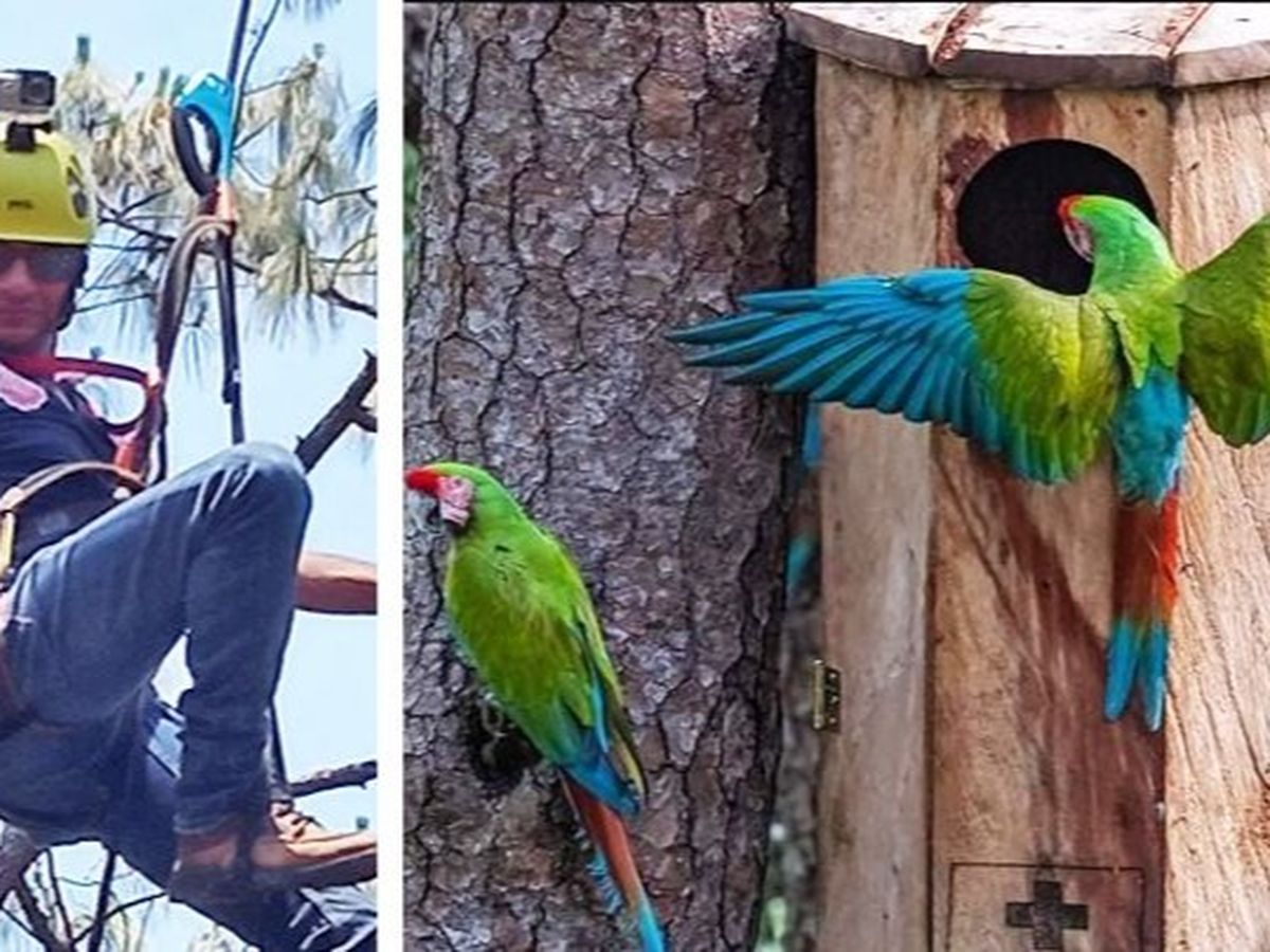 Actualmente hay más de 30 parejas de guacamayas anidando en estado salvaje que regresan cada año para anidar y criar a sus polluelos en el santuario. Nosotros proporcionamos los nidos artificiales, que son necesarios porque no hay suficientes árboles grandes para sus nidos. Trabajamos en estrecha colaboración con biólogos para identificar a las guacamayas y rastrear su actividad, limpiar a los polluelos de parásitos y proporcionar una presencia para evitar que los cazadores furtivos ingresen al Santuario.