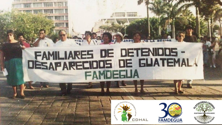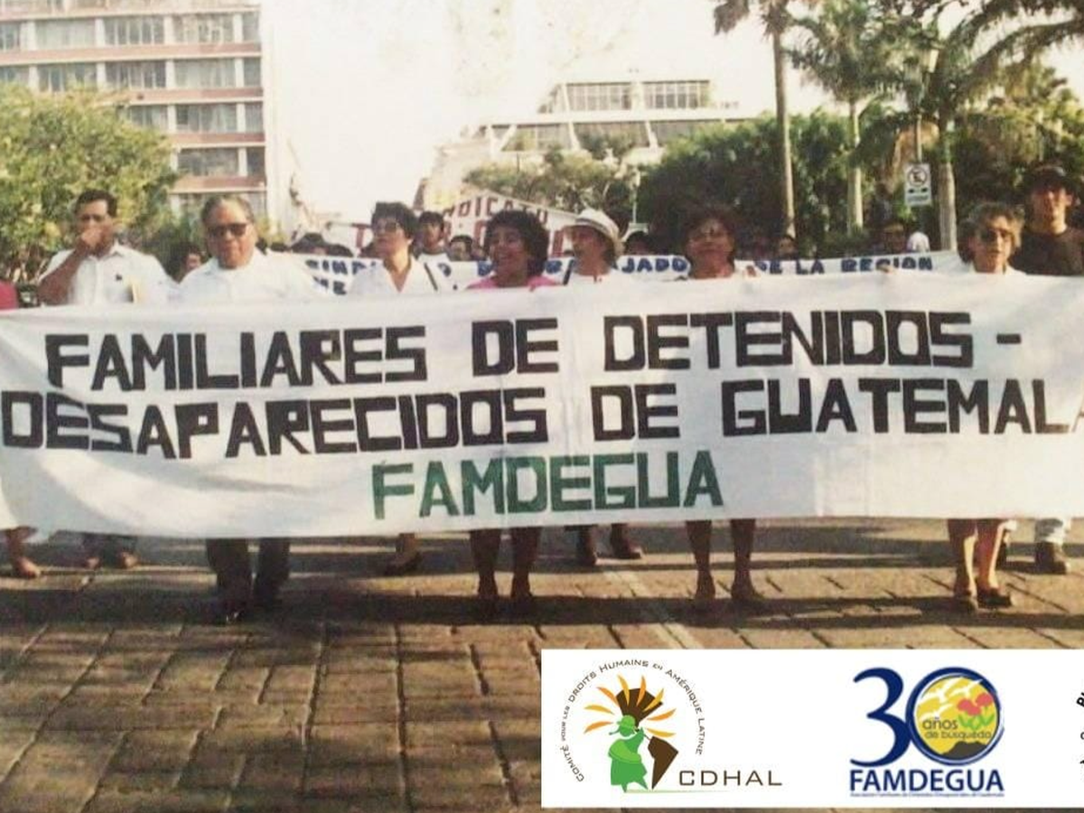 L' Association des familles des détenus disparus du Guatemala, FAMDEGUA, fondée en 1992, es composée d'enfants, de frères et sœurs, de pères et mères des personnes et disparues par l'État guatémaltèque pendant le guerre (1960-1996). Nous cherchons nos proches afin de comprendere ce qui leur est arrivé; connaître leurs idéaux, nous souvenir d'eux, ne jamais les oublier et comprendre les raisons de leur disparition. À FAMDEGUA, nous regroupons seulement quelques proches des plus de 45 000 personnes disparues pendant la guerre. Nous soutenons, accompagnons et acquellons toutes les actions de recherche, et ce, jusqu'à ce que nous les retrouvions tous. La recherche aide dans notre processus de guérison et constitue une forme de réparation pour tant de dommages. En 33 ans de travail, nous avons réalisé plus de 160 exhumations et retrouvé 1 835 victimes. Notre travail couvre l'ensemble du territoire guatémaltèque et a un impact international grâce à des rencontres et des alliances avec d’autres organisations dans l'échange de connaissances et d'expériences. Nous représentons également les victimes devant la Cour interaméricaine des droits de l'homme et les tribunaux guatémaltèques.