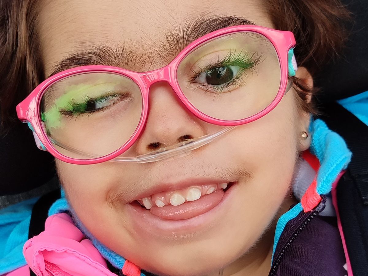 Violeta tiene un daño cerebral adquirido, epilepsia, se alimenta a través de un botón gástrico y un amplio etc.