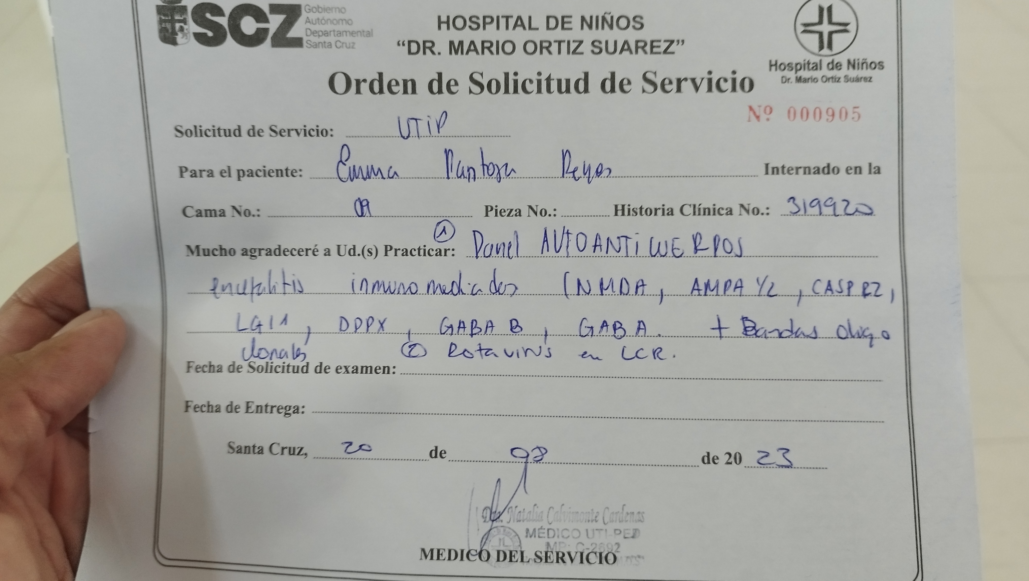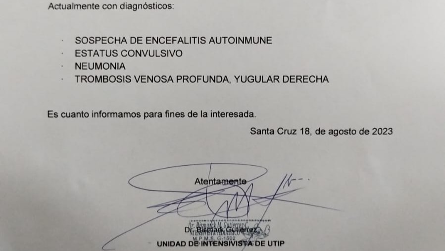 Hola a todos mi nombre Freddy Sebastián Pantoja Hurtado soy de Bolivia, los fondos que quiero recaudar son para mi niña que tiene 3 añitos su nombre es Emma Aranxta Pantoja Reyes ella se encuentra en terapia intensiva, entubada en estado crítico con un pronóstico reservado, posiblemente ella tenga una Encefalitis Autoinmune, es una enfermedad que necesita muchos estudios y análisis de laboratorios y que son bastante costosos, también el tratamiento de esta enfermedad es es muy costoso ya que utiliza inmunoglobulinas que cuestan entre 2.000$ a 3.000$ (dólares), todo lo recaudado será utilizado en para la compra de medicación, realizar los estudios y estadía hospitalaria.