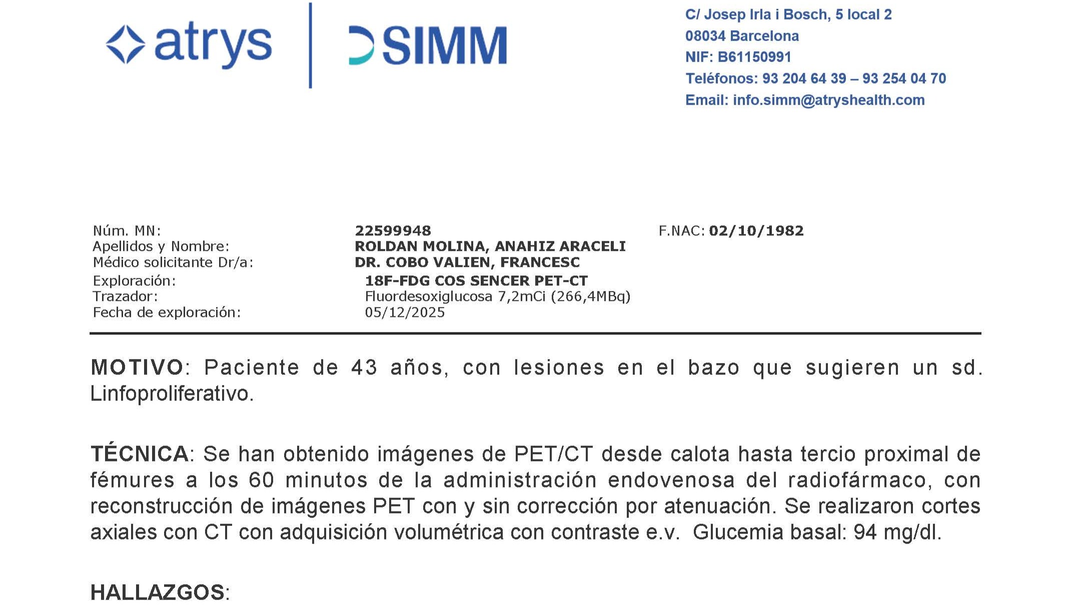 Aqui os dejo mi PET-TEC donde explica todo mi cuadro médico: