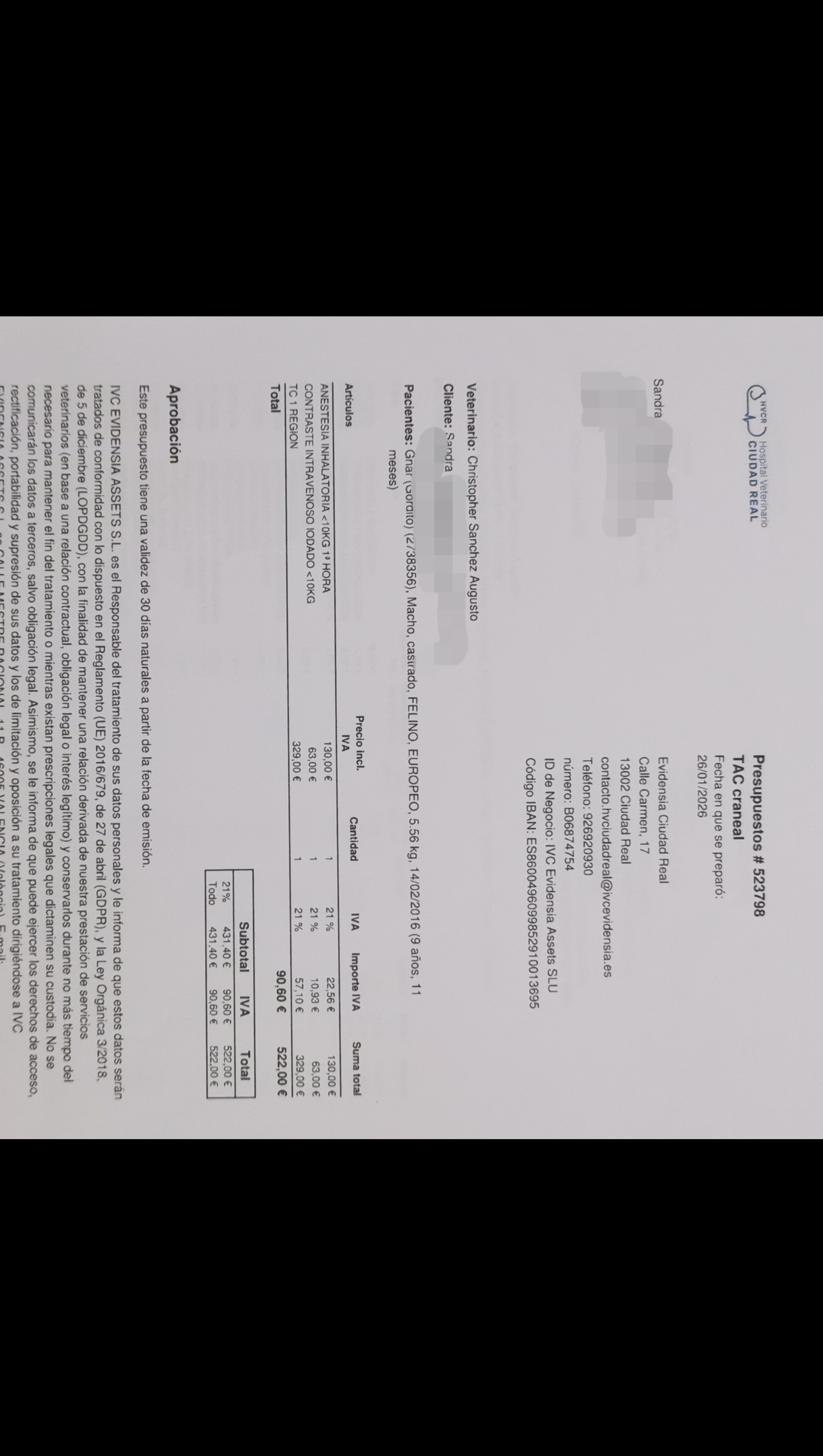 Todavía queda que me digan más presupuestos, pero basándome en lo que ya he pagado y en los presupuestos actuales, el objetivo es de 4.000 €, aunque el coste final podría variar según la evolución. Sé que puede parecer una cifra alta, pero es el coste real de pruebas, hospitalización y tratamiento en un hospital veterinario.