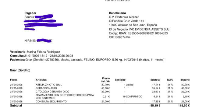 Hospital Vet, consulta + citología - 29/12/2025 - 215,62€