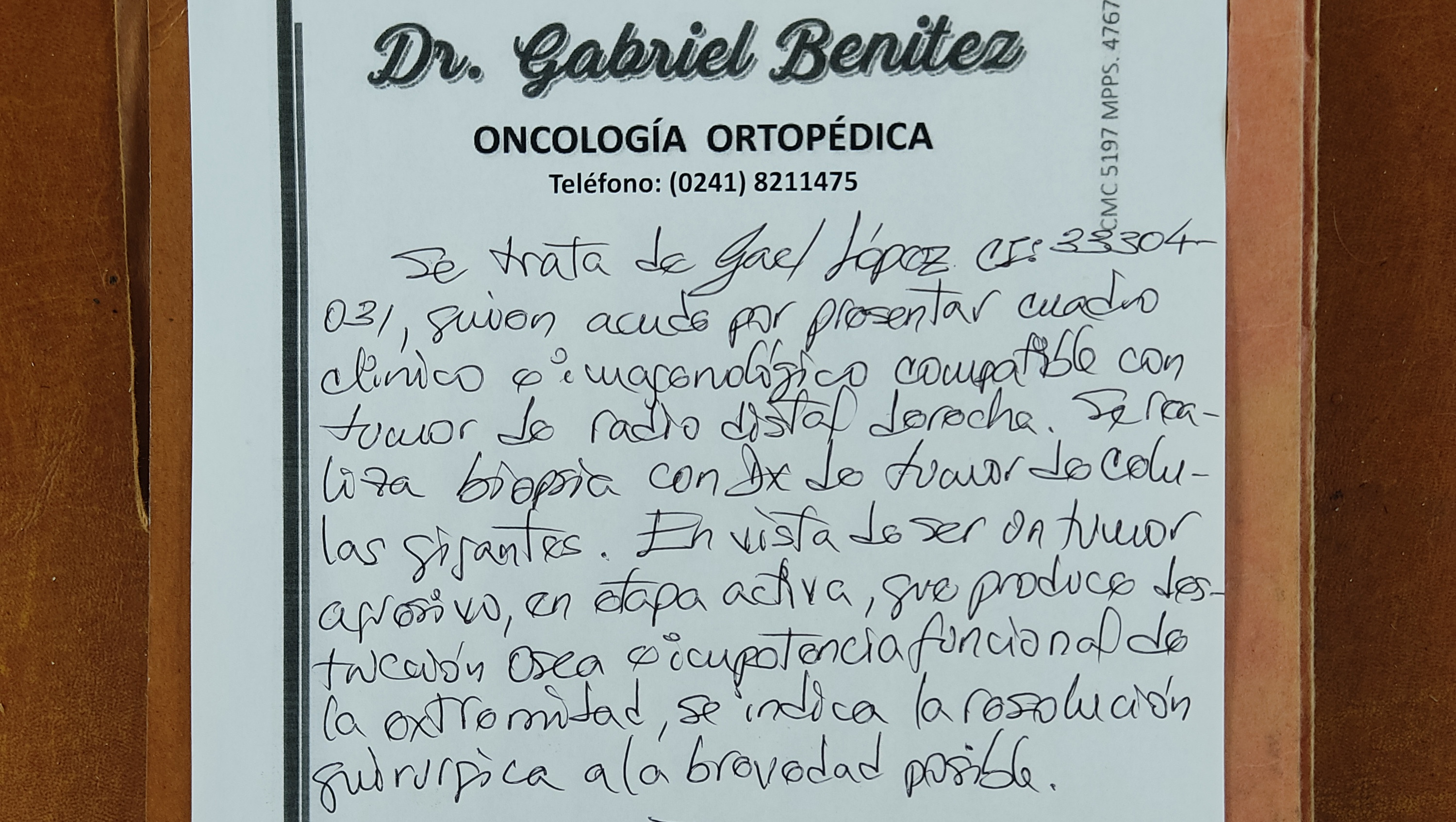 Hola, me llamo Gael. Estoy recaudando fondos y requiero de tu ayuda porque necesito operarme nuevamente del brazo. Ya fui sometido a una intervención quirúrgica en la que se removió una lesión tumoral que me salió en la muñeca derecha. Gracias a una biopsia que requirió una intervención quirúrgica ambulatoria, descubrimos que se trataba de un tumor de CÉLULAS GIGANTES. Aunque se supone que tiene carácter benigno, fue muy agresivo: empeoró muy rápidamente después de la primera biopsia (me hicieron una segunda en Caracas para confirmar), provocó gran pérdida ósea y tenía potencial de malignidad si no se atacaba inmediatamente. El tumor que se removió pesó aproximadamente 2 kilos. Gracias a Dios, la tercera biopsia de la pieza confirmó nuevamente el diagnóstico, lo que permite que me hagan cirugía reconstructiva y no una amputación, que estuvo entre las opciones médicas propuestas. Sabemos desde ya que perderé la movilidad de la muñeca. Los doctores aún están decidiendo el plan quirúrgico: están entre hacerme un raspado óseo del peroné para insertarlo en el radio (hueso del brazo que se vio afectado) para que se solidifique, o colocarme el cúbito de manera central, para que sea el único hueso de mi antebrazo. Parece que tienden hacia la segunda opción, dado que la pérdida ósea es de al menos 10 centímetros. La primera se trató de una operación de gran envergadura, que duró más de ocho horas y requirió de un gran equipo especializado: cirujano, especialista en cirugía de mano y especialista en tumores óseos, además de varios doctores asistentes. Logramos manejarlo a través de la salud pública, en el Hospital Pérez Carreño, en Caracas. La salud en mi país, Venezuela, lamentablemente está en situación de crisis y a pesar de contar con profesionales de gran talla, todos los insumos quirúrgicos y medicamentos deben ser cubiertos por mi familia. Eso sin contar el hecho de que hemos tenido que permanecer más de un mes fuera de nuestro hogar en una ciudad ajena y haciendo diligencias que requieren muchos gastos de movilización. He contado hasta ahora con mucha solidaridad de amigos, vecinos, familiares e instituciones, pero aún necesito un poco más de apoyo para concluir esta etapa amarga de mi vida y recobrar mi salud, dentro de las posibilidades. Soy diestro, así que esta lesión ha complicado mi calidad de vida y mis posibilidades de movilidad, al igual que mis actividades como atleta. Sin embargo, estamos esperanzados porque al menos no se trató de un carcinoma (lo que se temió antes de las biopsias) y no necesitaré tratamientos químicos, tan solo otra intervención quirúrgica, que si bien es de gran envergadura, será realizada por un excelente equipo médico en el que confío plenamente para ayudarme a recuperar mi salud. Si está dentro de tus posibilidades ayudarme con una donación, te estaré agradecido eternamente; cualquier cifra es bienvenida por pequeña que sea: todo suma. También te agradezco la difusión de esta información por todas las plataformas que te sean disponibles, así como los posibles contactos con instituciones gubernamentales o benéficas que puedan ayudar. Todos los aportes serán eternamente agradecidos. De igual manera, si estás en situación de DONAR SANGRE en la ciudad de Caracas, ese aporte también será bienvenido. Dios te bendiga y reponga tu ayuda en salud y bienestar. Si quieres donar en *bolívares*, puedes hacerlo a la cuenta de mi mamá: Alejandra González Poleo Provincial Corriente 0108 0977 1701 0020 5079 Para pago móvil: Ci 14491428 Telf 04125384544 Si quieres donar en *Euros* puedes hacerlo a la cuenta de mi papá: Fernando Enrique López González: ES7820800144853000032790 (Abanca) Si quieres donar en *Zelle* o donar *sangre* comunícate con mi mamá al +584125384544 y ella coordinará para hacer efectivo tu aporte. También puedes donar en el sitio GoFundMe. Mil gracias!!! https://gofund.me/3bf10d25