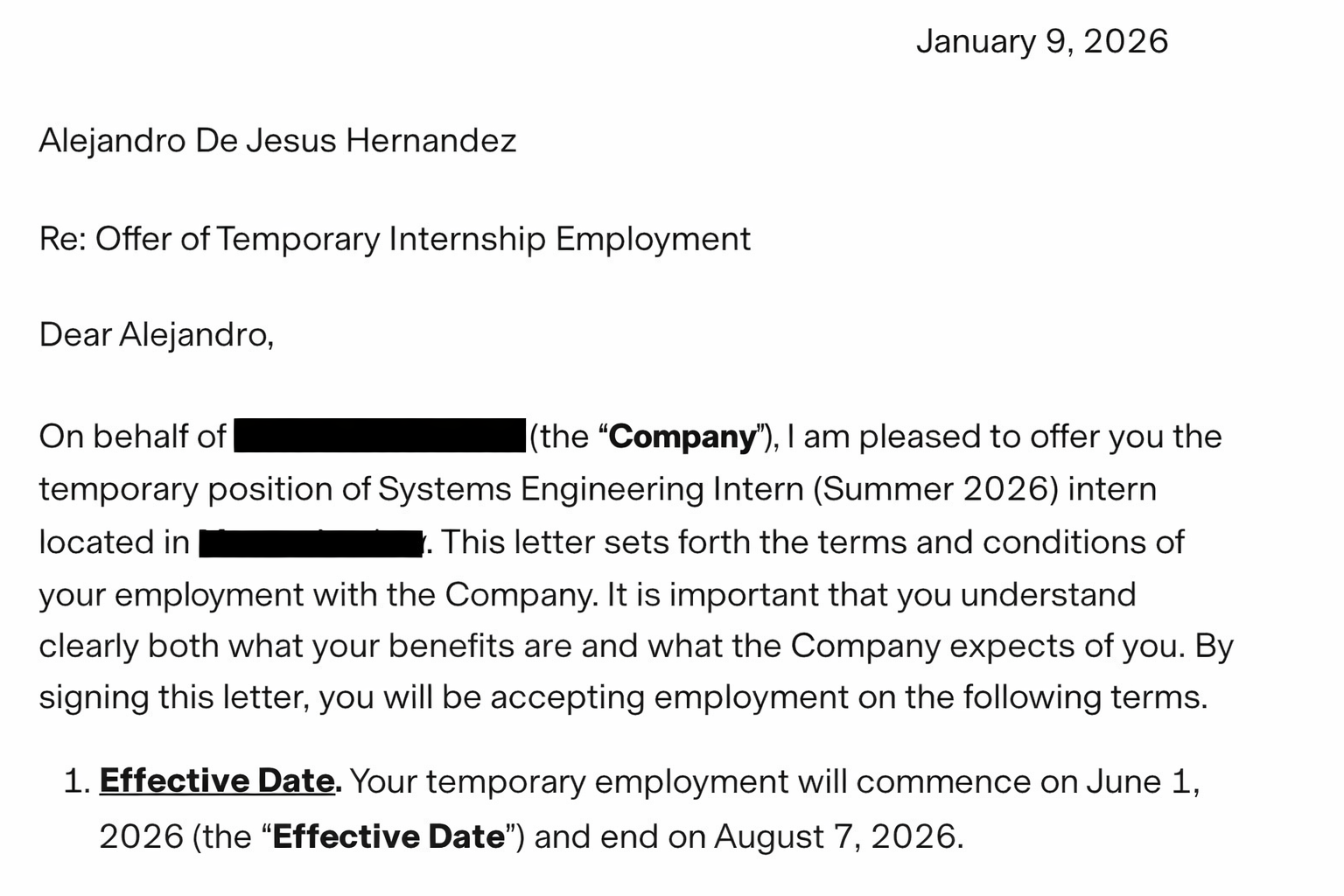 Este internado no es solo un trabajo de verano, es un paso real hacia mi meta de convertirme en ingeniero mecánico en la industria aeroespacial, trabajando en proyectos como satélites y sistemas robóticos.