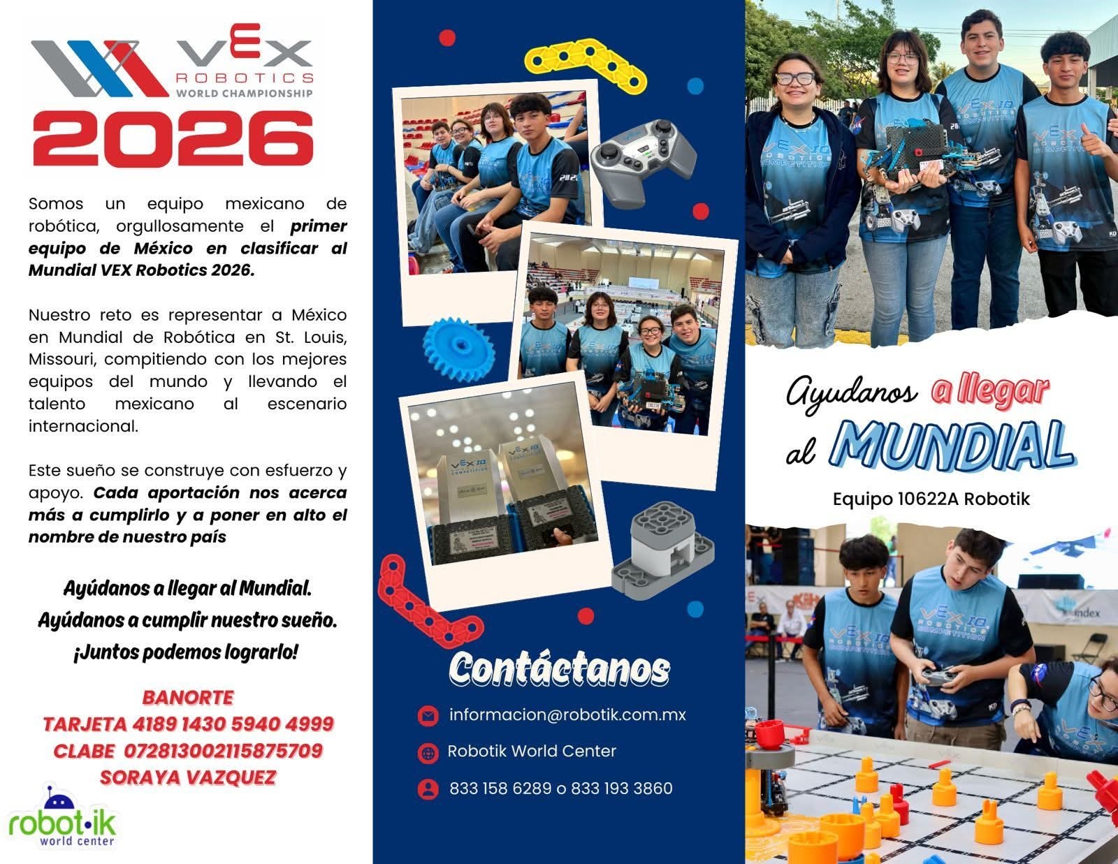 ¡Ayúdanos a llegar a la Competencia Mundial de Robótica VEX Robotics 2026!