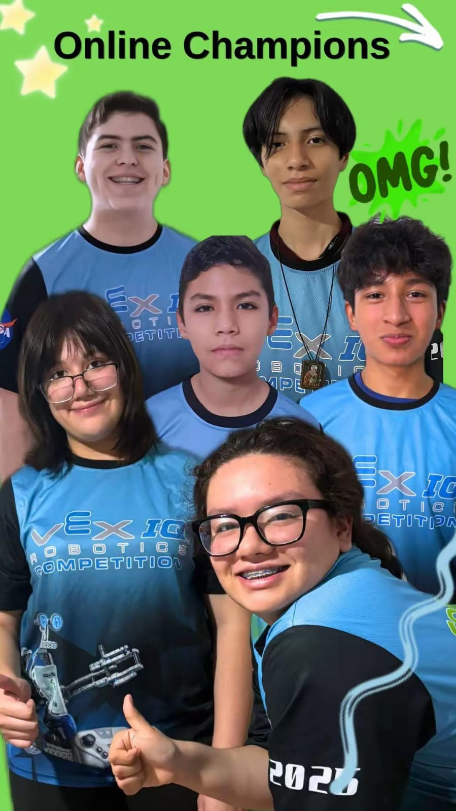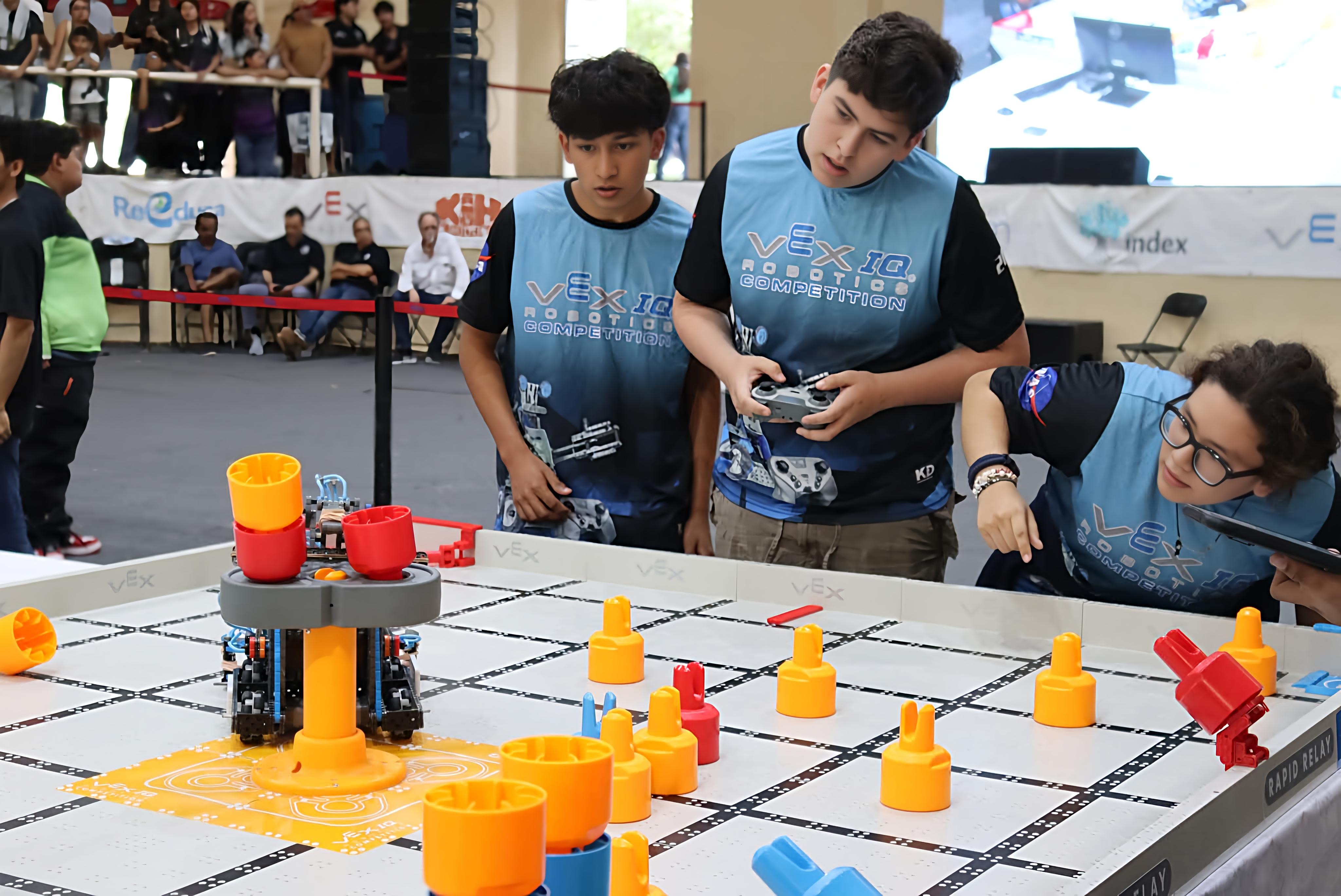 Aqui la Informacion del Campeonato Renata, Abi, Natanael, José Fernando, Luis Dionisio y Victor David iniciaron en la práctica de la robótica desde hace varios años. Son integrantes del equipo 10622A de competencias VEX Robotics y son campeones nacionales al haber quedado como campeones en el Torneo Internacional de Robótica y Habilidades STEM en Playa del Carmen organizado por Academia STEM, además de ganar el premio Excellent Award, premio que les otorgó la acreditación al Campeonato mundial de robótica.