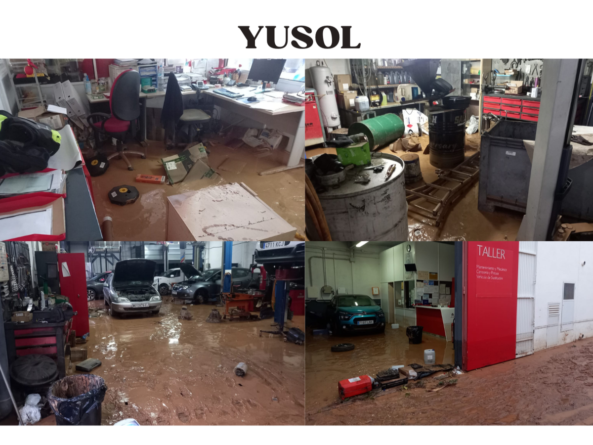 Estamos tratando de salir adelante, aunque la inundación ha dejado daños irreparables en nuestro taller y en nuestro hogar, afectando muchas de las herramientas y máquinas imprescindibles para nuestro trabajo, como la máquina desmontadora de neumáticos, equilibradora de ruedas, compresor de aire, ordenadores de diagnóstico técnico y de oficina, cargador de vehículos eléctricos, cargador de baterías, sistema de aire acondicionado para vehículos (A/A), además de otros equipos y útiles de reparación.