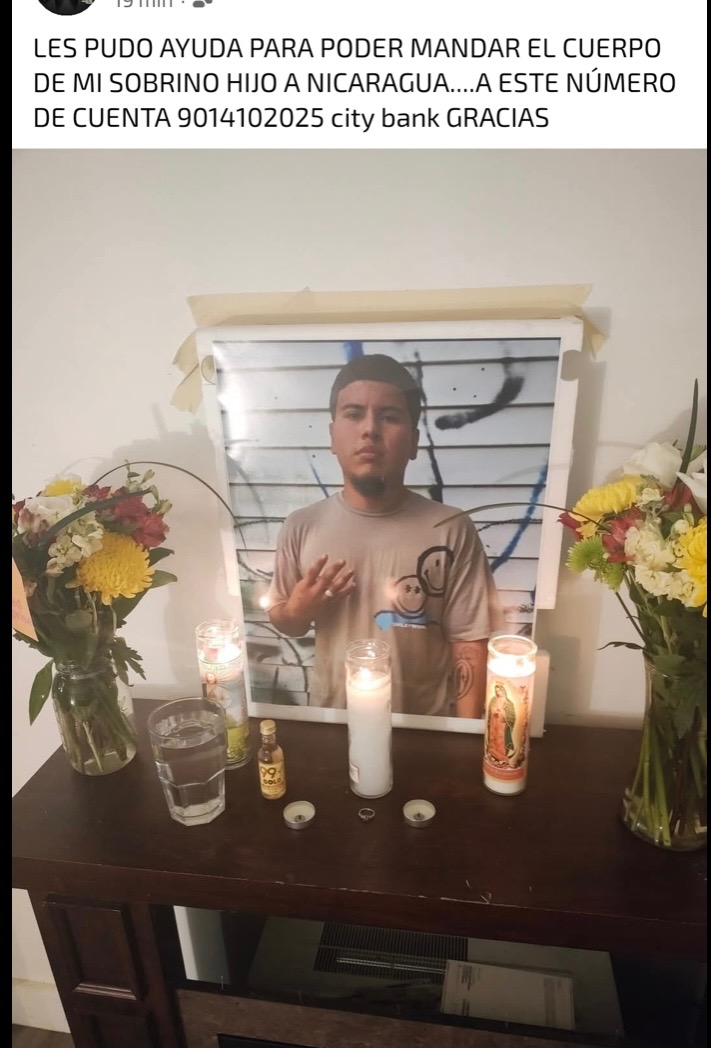 Hola, me llamo Margarita Hernández Mi sobrino David Hernández, un joven lleno de sueños, perdió la vida trágicamente mientras buscaba un futuro mejor. Somos una familia de Nicaragua, y pedimos de corazón tu ayuda para repatriar su cuerpo y reunirnos con él una última vez con sus padres y sus hermanos, Cualquier apoyo nos acercará a darle el descanso que merece junto a sus hermanos y seres queridos. Gracias por tu generosidad cualquier información me puedes escribir a mi número o llamar +1 (929) 622‑4405
