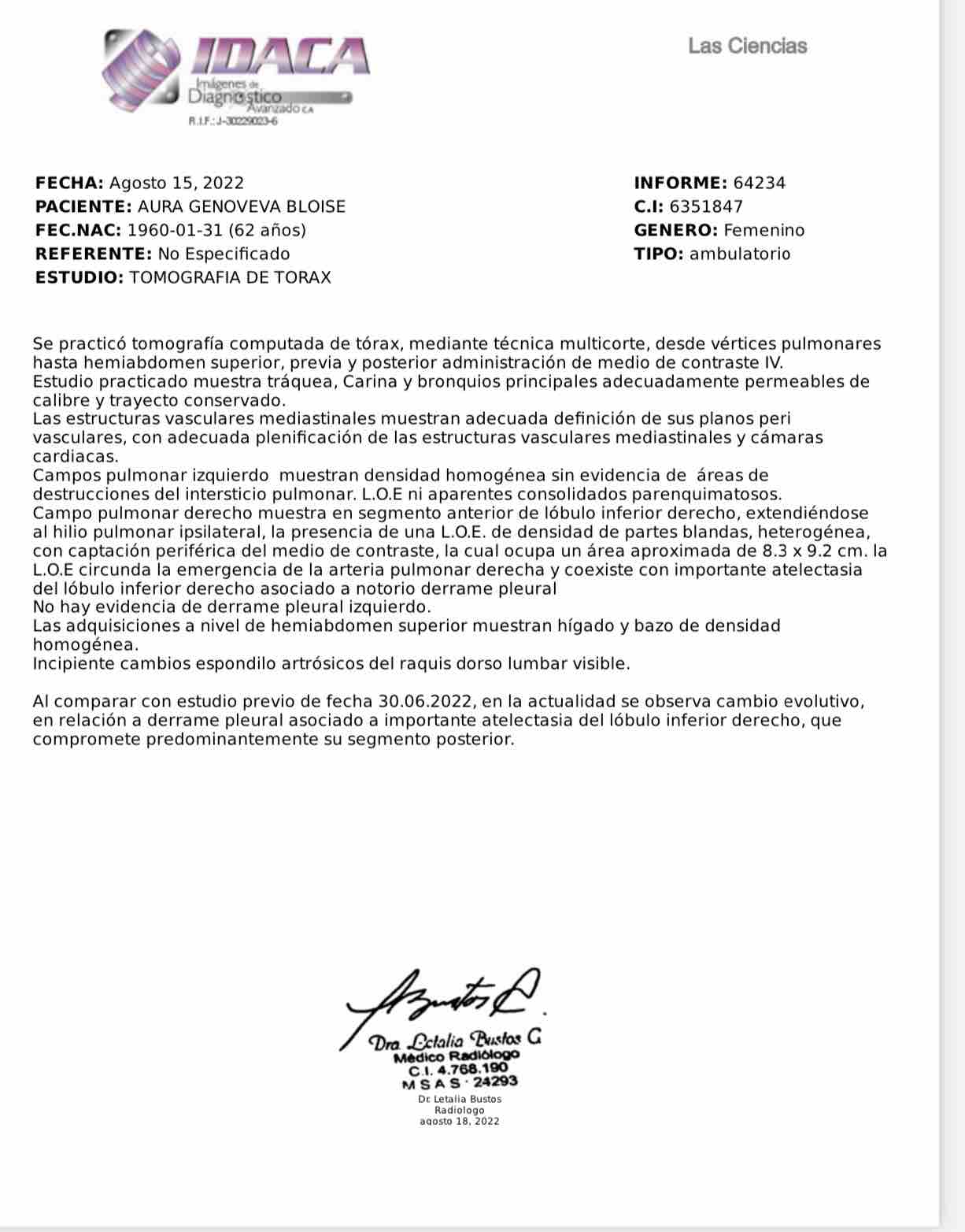 Since her discomfort began three months ago, Aura's health has been in decline, with constant discomfort, pain in the lung area, little oxygenation of the blood and even the accumulation of fluid in her lung ( pleural effusion).