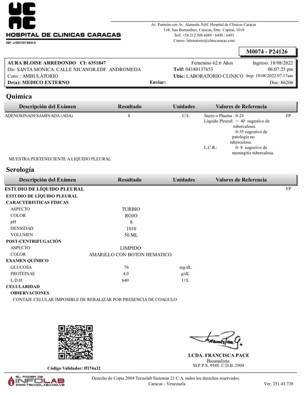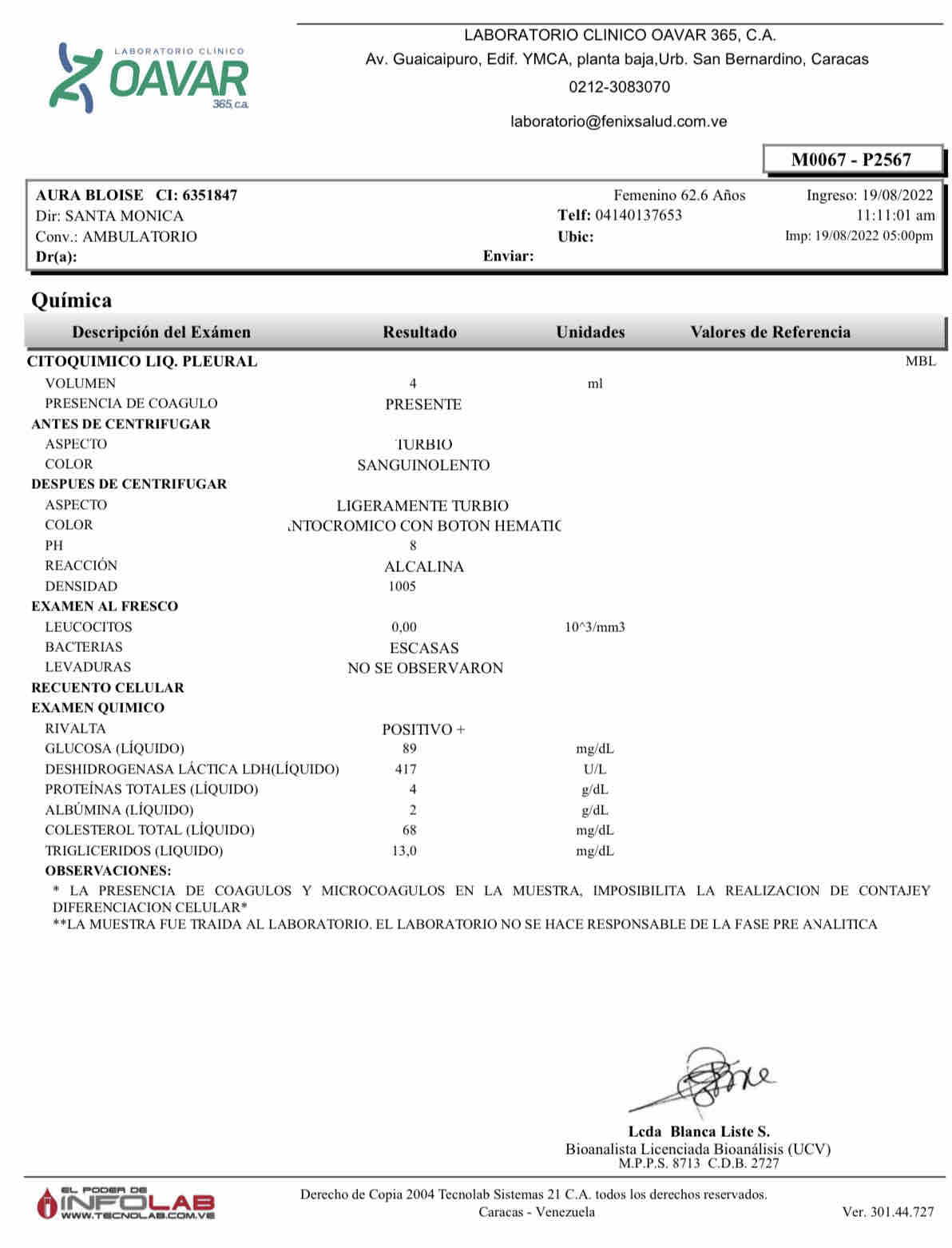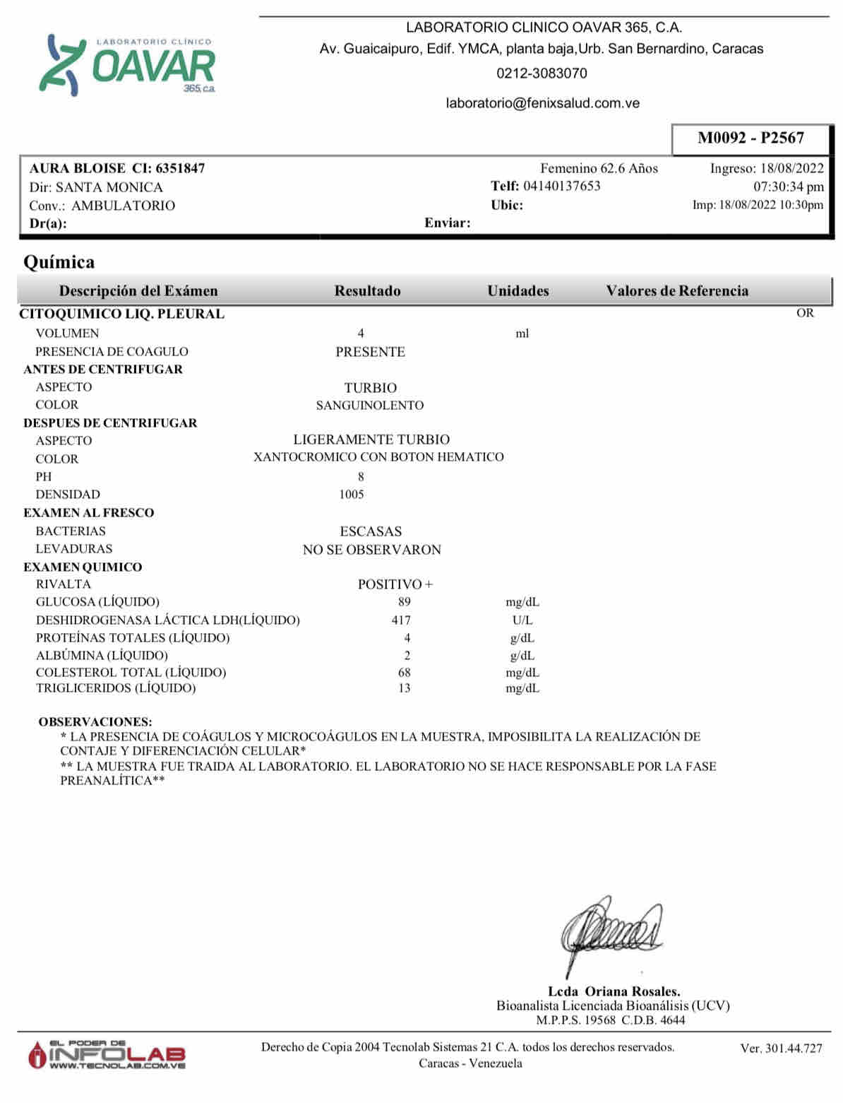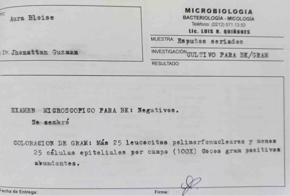 Desde que su malestar inició hace ya tres meses, la salud de Aura se ha venido en decadencia, con un malestar constante, dolor en el área pulmonar, poca oxigenación de la sangre e inclusive la acumulación de líquido en su pulmón (derrame pleural).