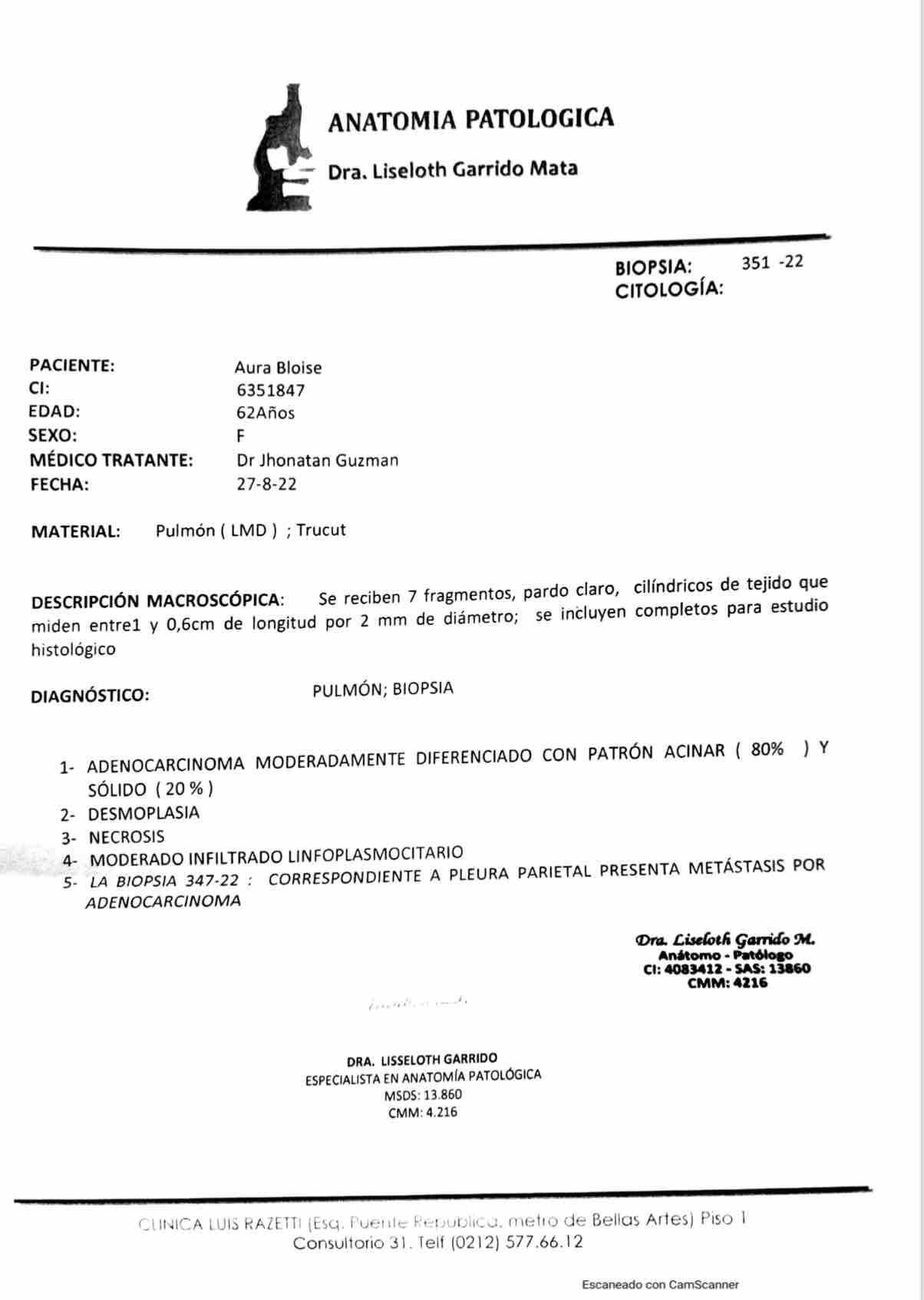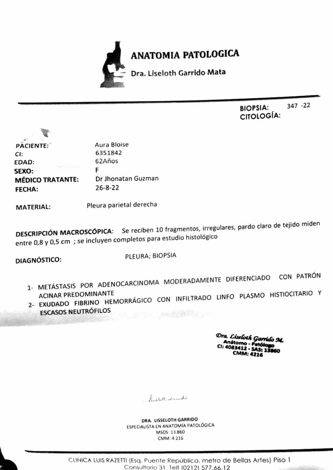 Her health problems began in April of this year, with what was thought to be just a cough, by May it was already clear that the problem was greater. She underwent a chest CT scan in June that revealed a tumor and what already seemed to be cancer. However, the complexity of the area prevented her from being able to be correctly diagnosed with a biopsy at the time of obtaining a tissue test, a second examination revealed the disease.