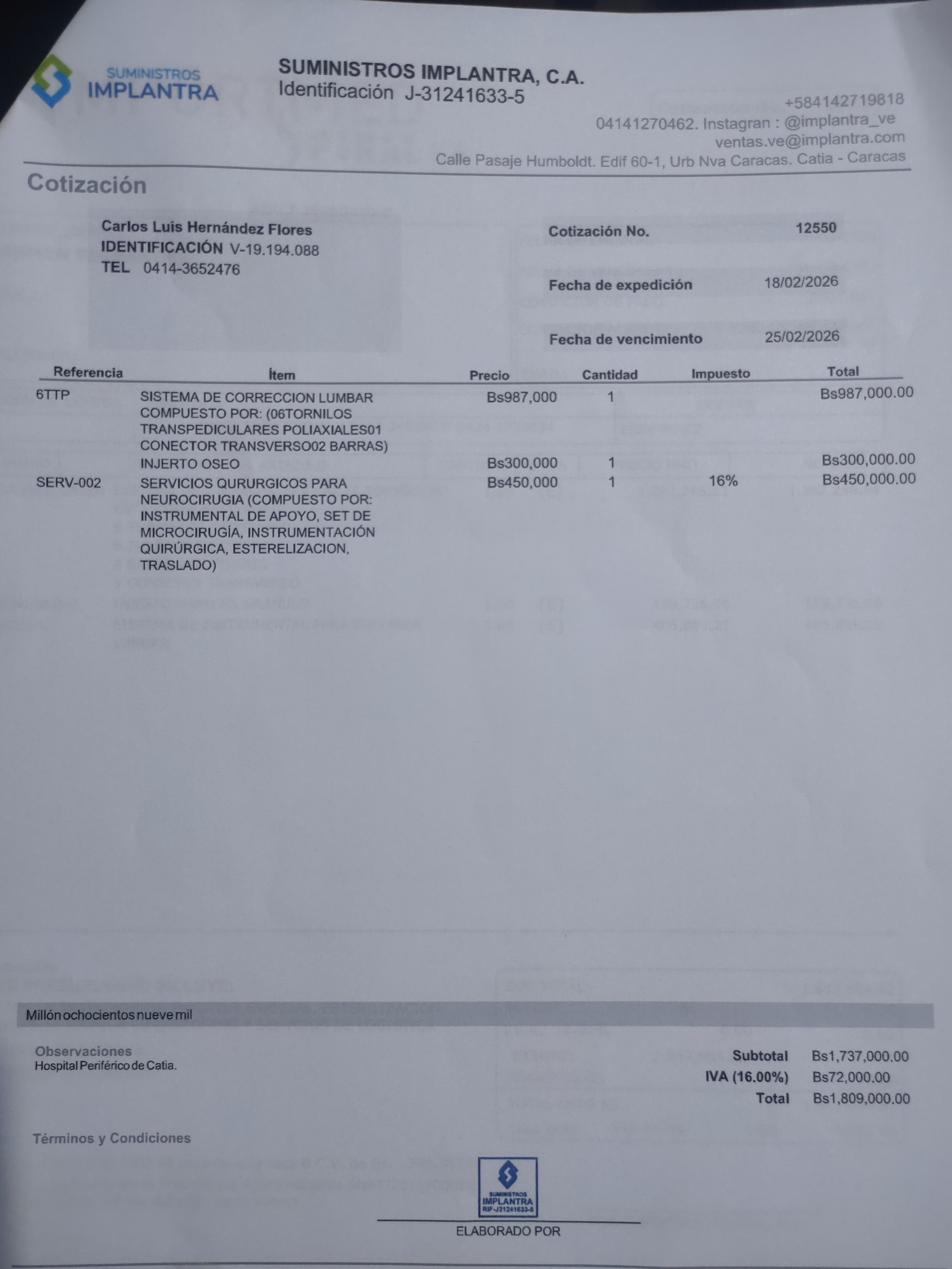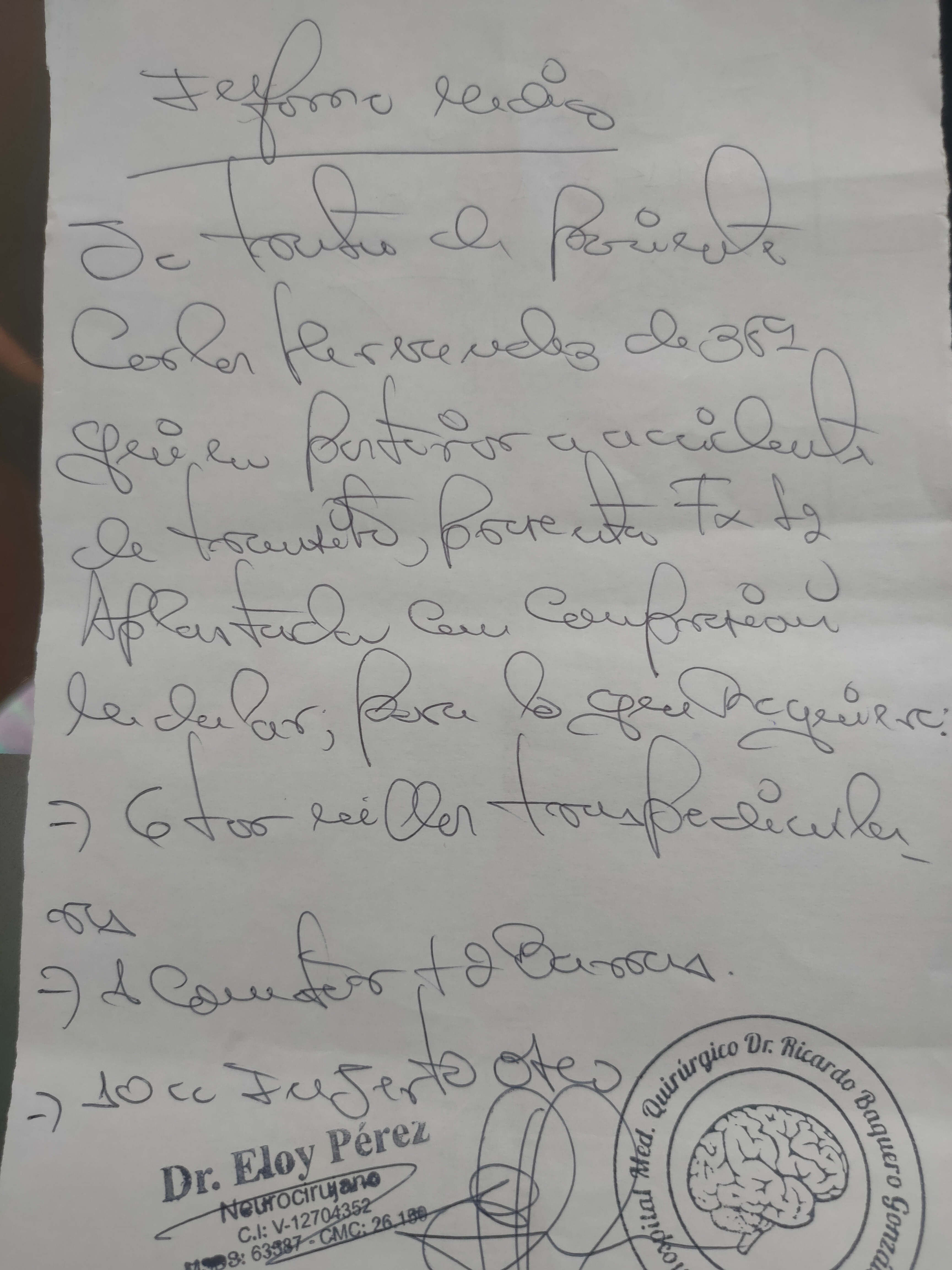 Hola soy Díany la Mamá de Carlos Hernández, de 35 años, mi hijo sufrió un grave accidente en motocicleta el día 6 de Diciembre el cual le dejó como consecuencia tres fracturas : Pelvis, Columna (L2), brazo Izquierdo (Cubito y Radio) y Quemaduras de 1er. Grado en el 60 % de su espalda. De las cuales ya afortunadamente le han practicado dos de las tres operaciones Pelvis y Brazo Izquierdo, quedando pendiente y con carácter de urgencia La Operación de Columna Vertebral (L2), valorada en 5000 $, motivo por el que me dirijo a cada persona que pueda aportar su granito de arena para esta causa porque ya no contamos con recursos económicos.
