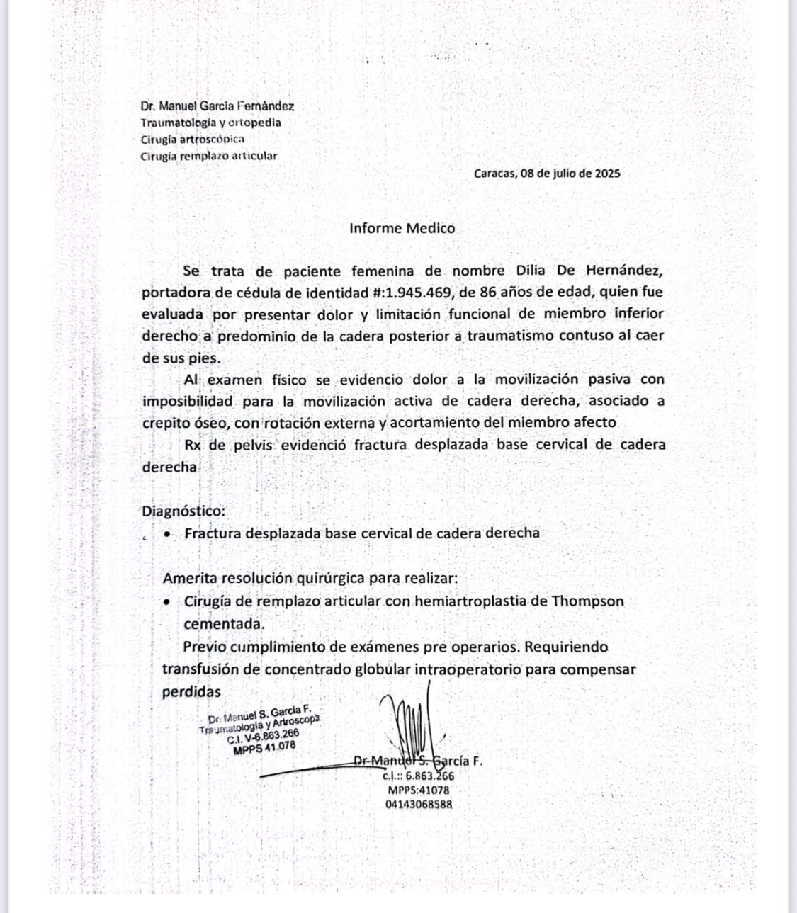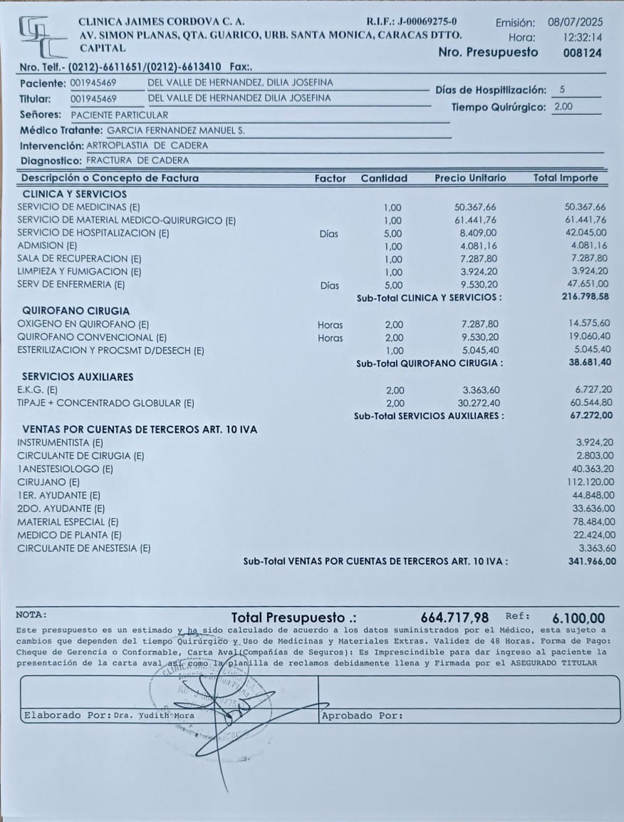 El pasado 4 de Julio, Dilia de 86 años —una madre, abuela y amiga querida por muchos— sufrió una caída en su hogar que le provocó una fractura de cadera derecha. Desde ese momento, su vida dio un giro inesperado. Ahora necesita ayuda para moverse, para dormir, incluso para las actividades más simples del día a día.
