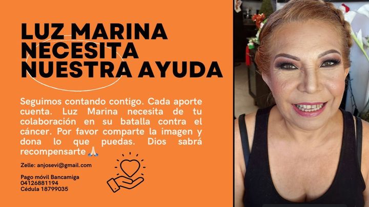Los fondos recaudados serán usados ÚNICA Y EXCLUSIVAMENTE para cubrir los costos de los tratamientos y todo lo relacionado con la salud de mi mamá, Luz Marina Sevilla Vivas.