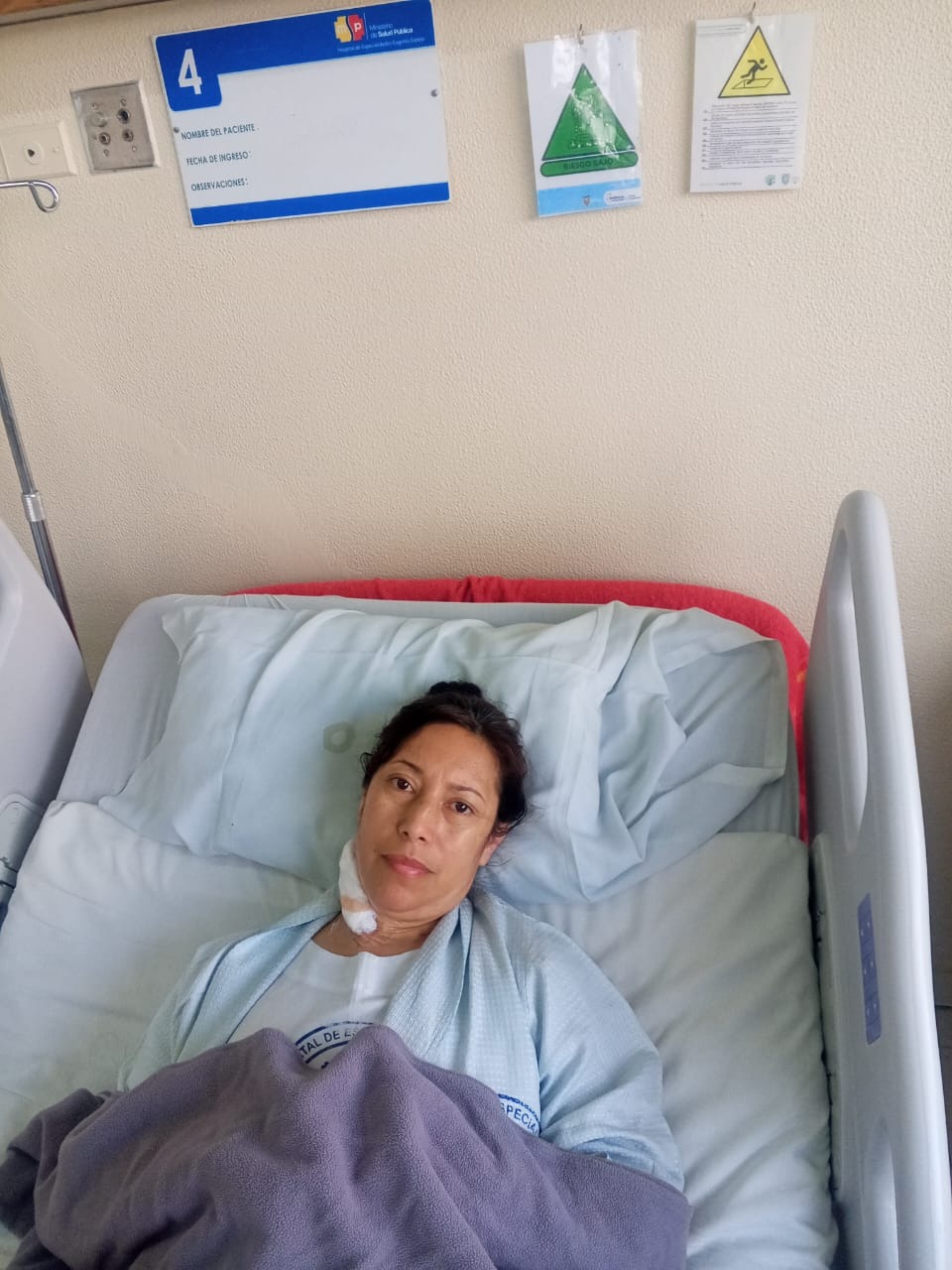 Santiago no ha podido trabajar debido a que debe brindar atención a su esposa las 24 horas del día, los 7 días de la semana. Nelly requiere cuidados muy delicados, lo cual resulta aún más difícil debido a que se encuentra en un hospital de bajos recursos en Ecuador, donde el personal de enfermería es insuficiente en comparación con la cantidad de pacientes que atienden.