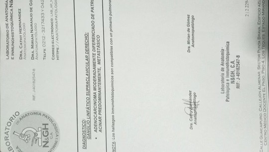 Dichos exámenes más la quimioterapia que consta de 3 ciclos que son cada 21 días y los implementos extra (Concentrador de oxígeno y los medicamentos para las recargas del mismo y