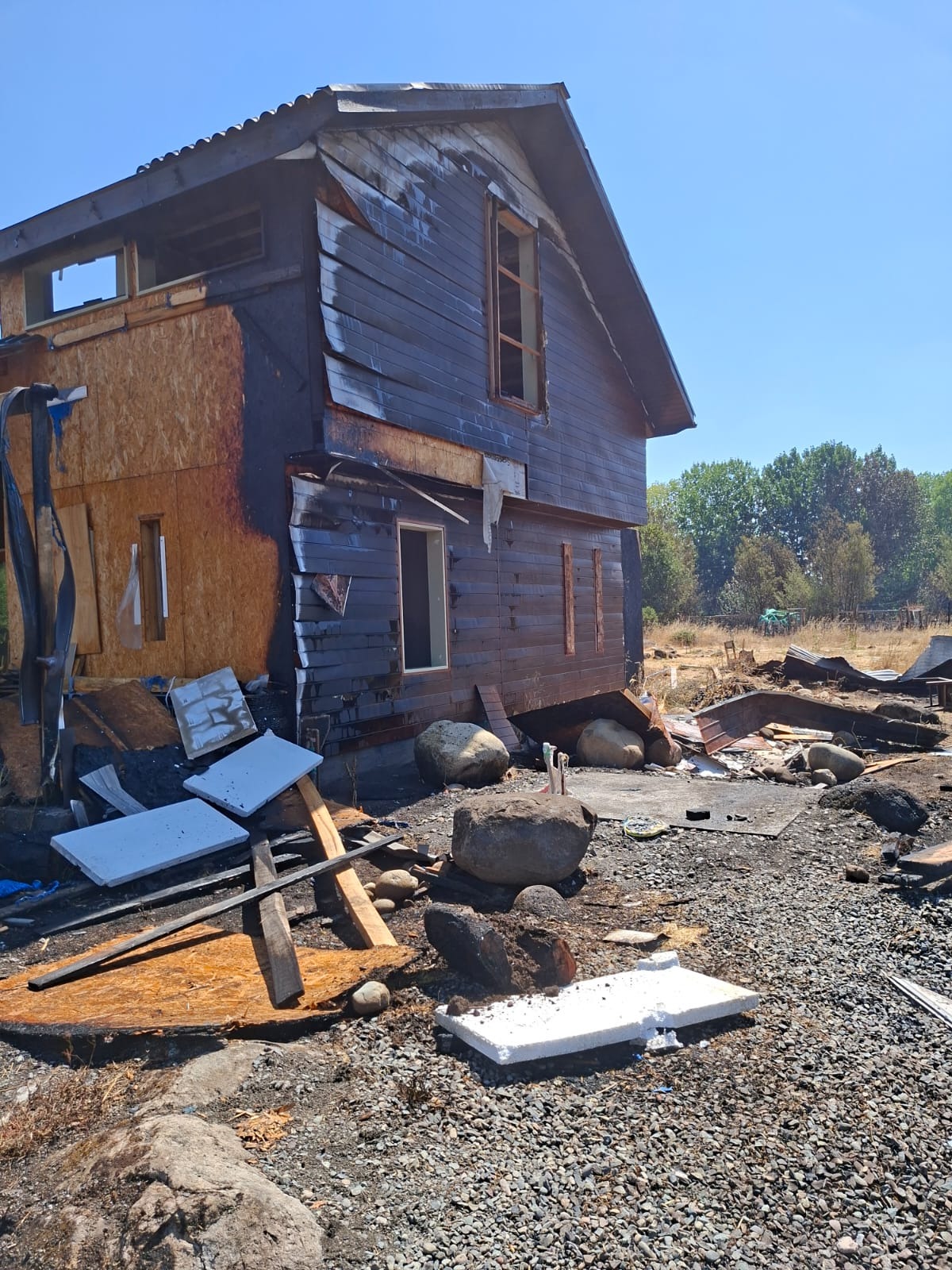 Lamentablemente, el fuego arrasó con gran parte de ese sueño. La cocina quedó completamente destruida luego de que balones de gas explotaran durante el incendio, y también se perdió la pieza principal, que habían terminado recientemente. Hoy la casa quedó con importantes daños y llena de escombros, lo que hace imposible habitarla o comenzar la reconstrucción sin ayuda especializada.