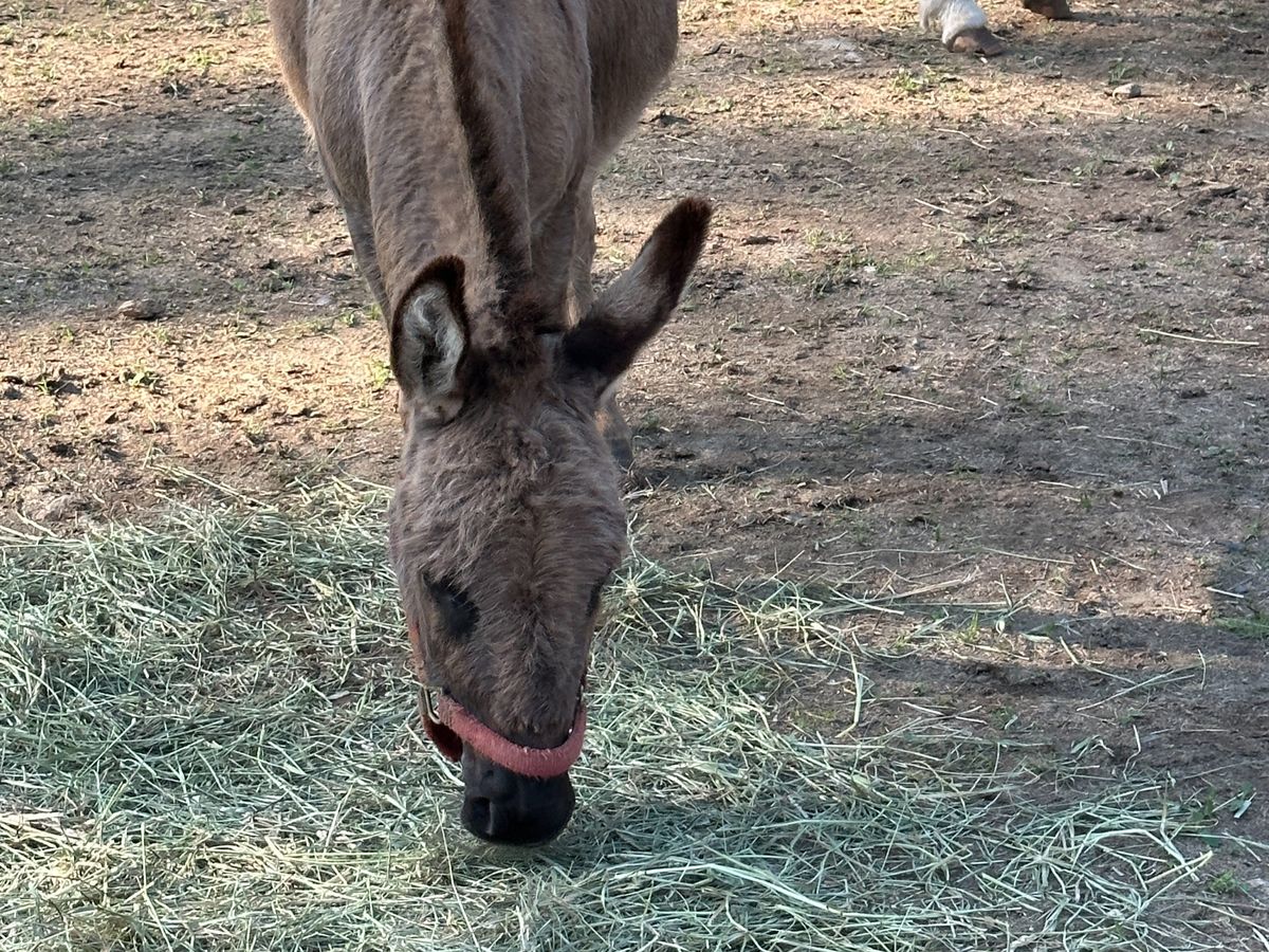 Beans has a long way to go to get comfortable with humans but he is enjoying being a donkey