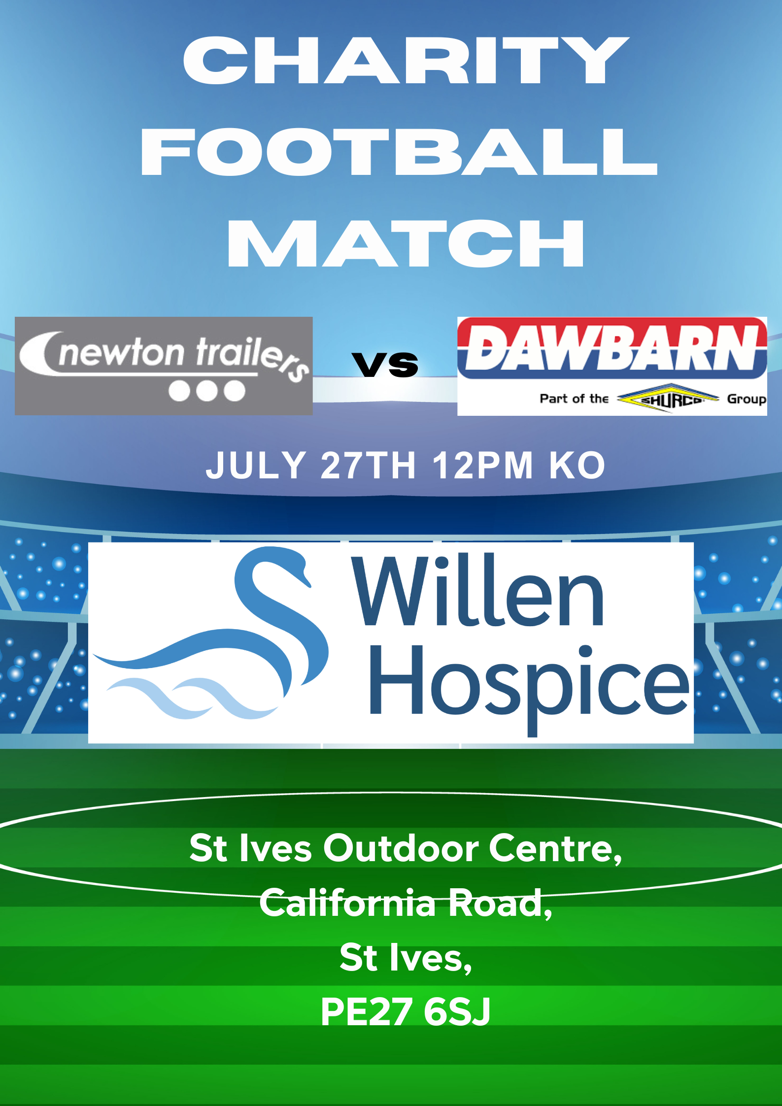 Newton Trailers VS Dawbarn/Shurco charity football match will take place on the 27th of July @ St Ives Outdoor Centre, 12pm KO.