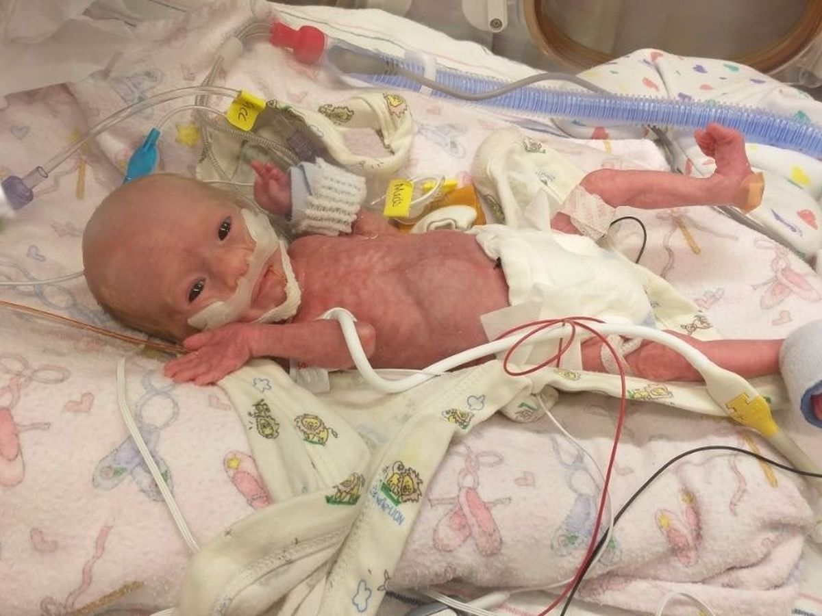 She was born only 1.7 lbs and 12.5 inches long and is currently in the NICU at Lehigh Valley Children's Hospital in Allentown, PA.