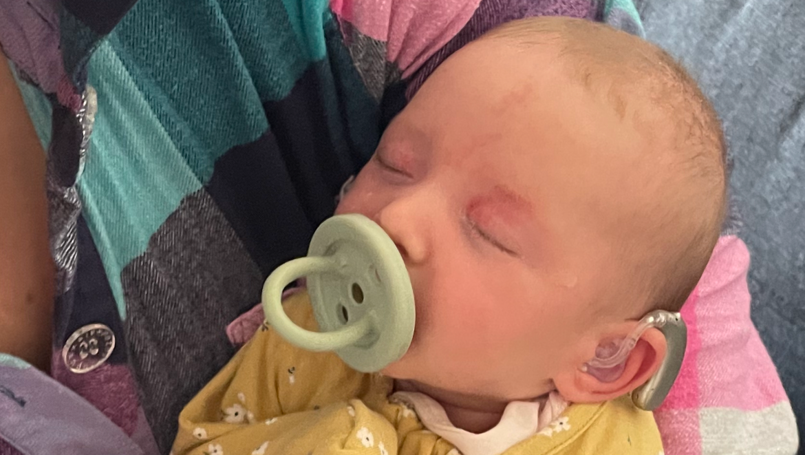 Hazel is our beautiful baby girl who was born on the 5th of June 2023! She has a big sister Olive, and many cousins who adore her. She was initially screened a couple of weeks after birth and it was found that she was profoundly deaf in both ears. After lots of other investigations she has been diagnosed with Congenital Cytomegalovirus (cCMV). This is an incredibly common virus in the community, however if the mum contracts it while pregnant and it passes through to the baby it has devastating effects on bubs.