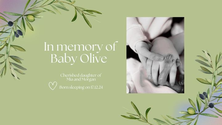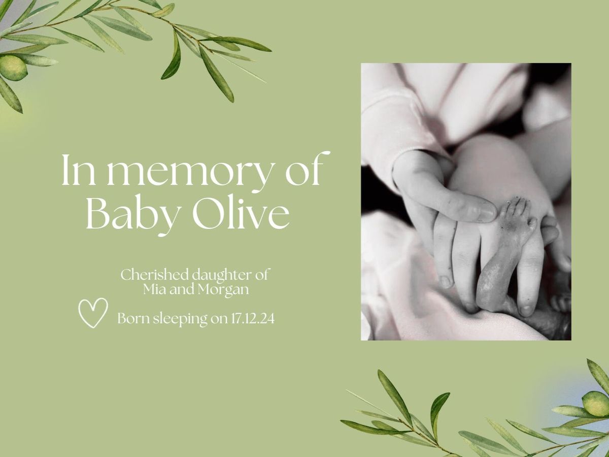 It is with broken hearts that we share the news that Baby Olive, the cherished daughter of my niece Mia and her partner Morgan, was born sleeping on 17th December at just under 28 weeks. Though her time with us was far too short, Olive’s presence has left an everlasting mark on her parents, our family, and everyone who loves her.