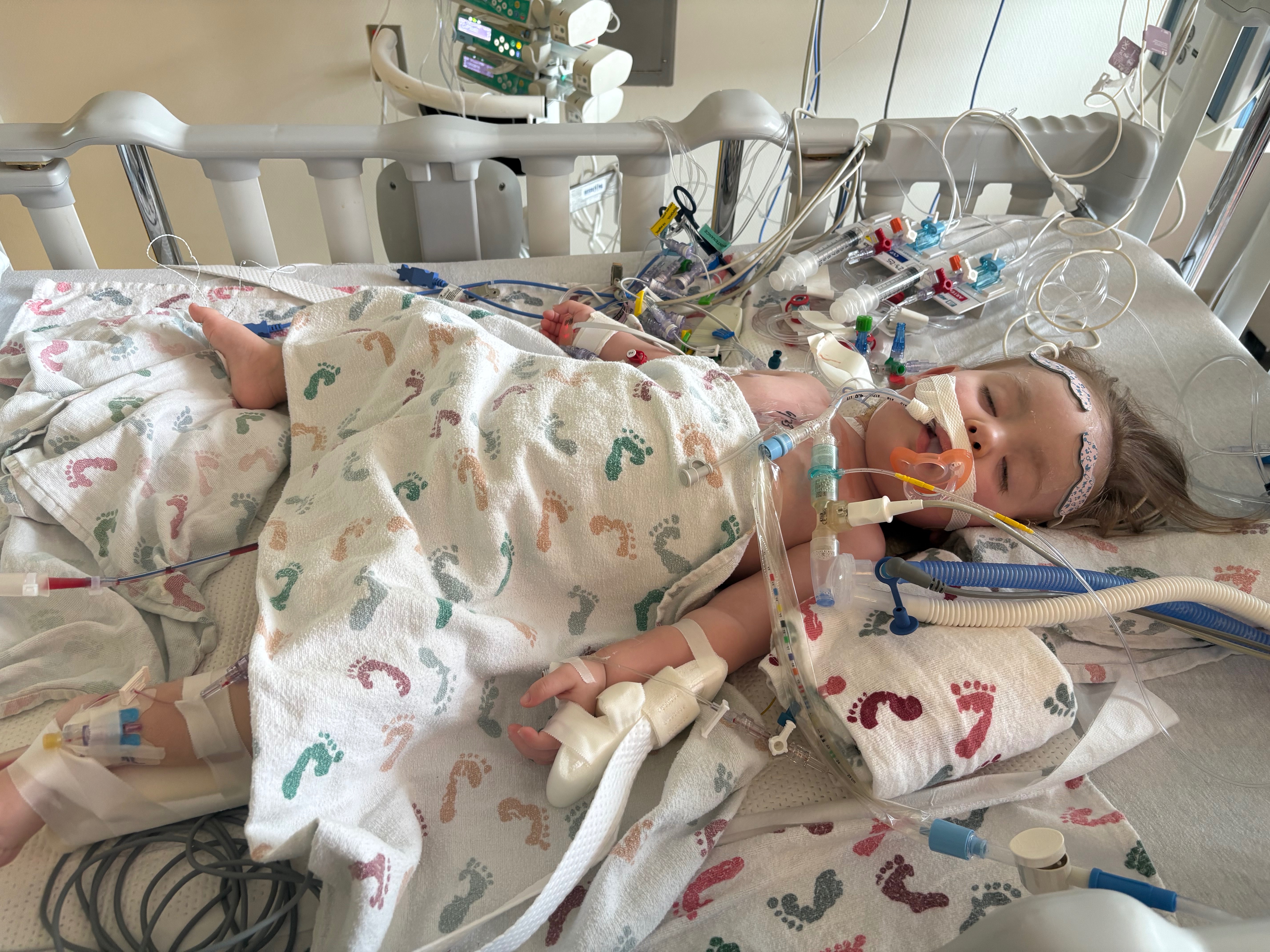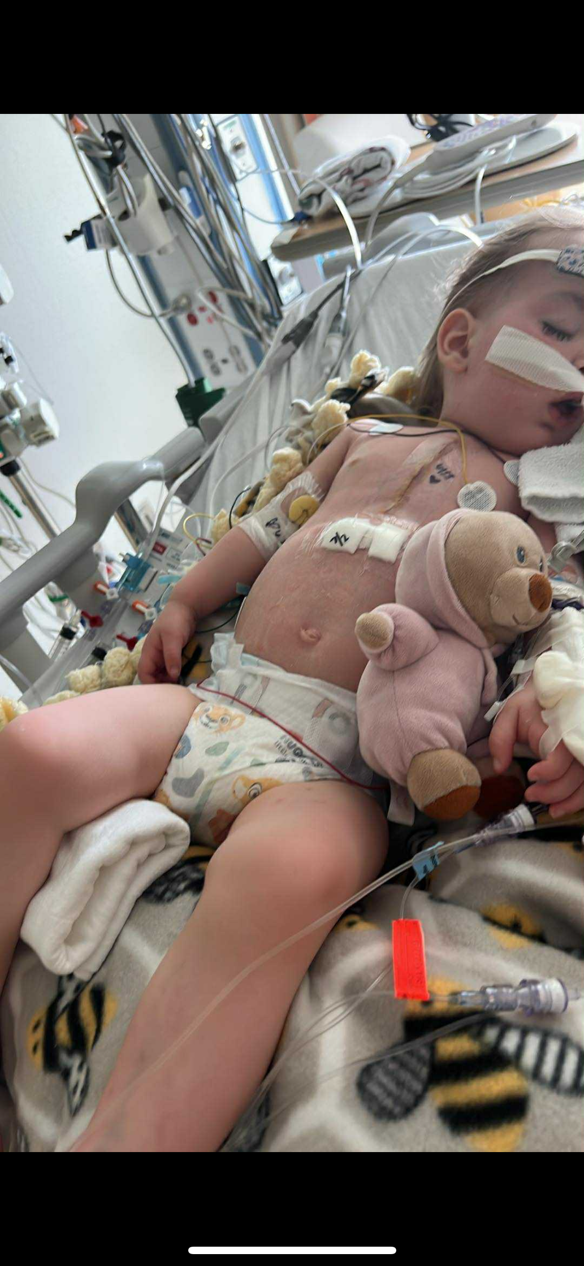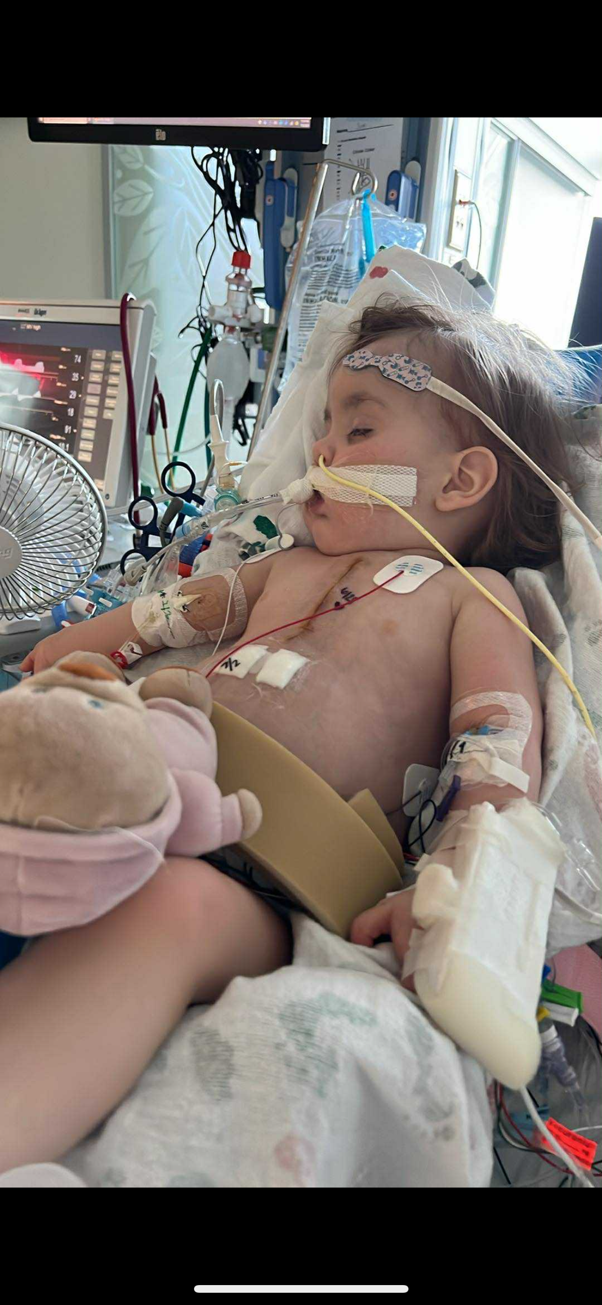 My 22 month old little girl is currently hospitalized and requiring continuous medical intervention to help keep her heart and lungs from failing after receiving open heart surgery to repair the holes in her heart. For the last 3 months, she has battled 5 different lung infections and 3 bowel infections and is still intubated from surgery 2 weeks ago. She is currently fighting ARDS(acute respiratory distress syndrome) we have no idea when she will be taken off the ventilator and breathing on her own. Im out of work and currently have a 1 week old baby. we have bills from home along with expenses that aren’t covered by insurance. Anything helps whether its a donation or a share.