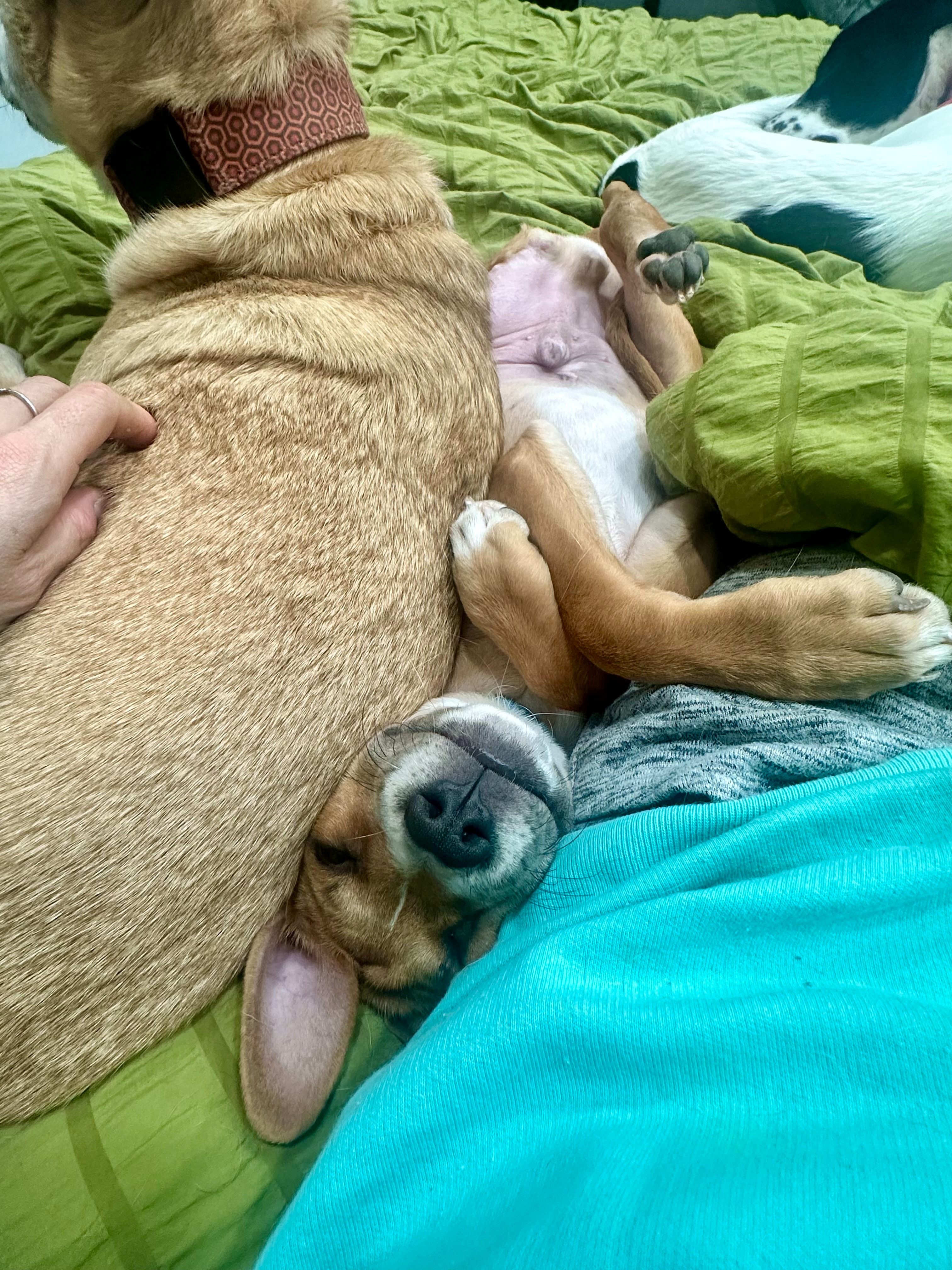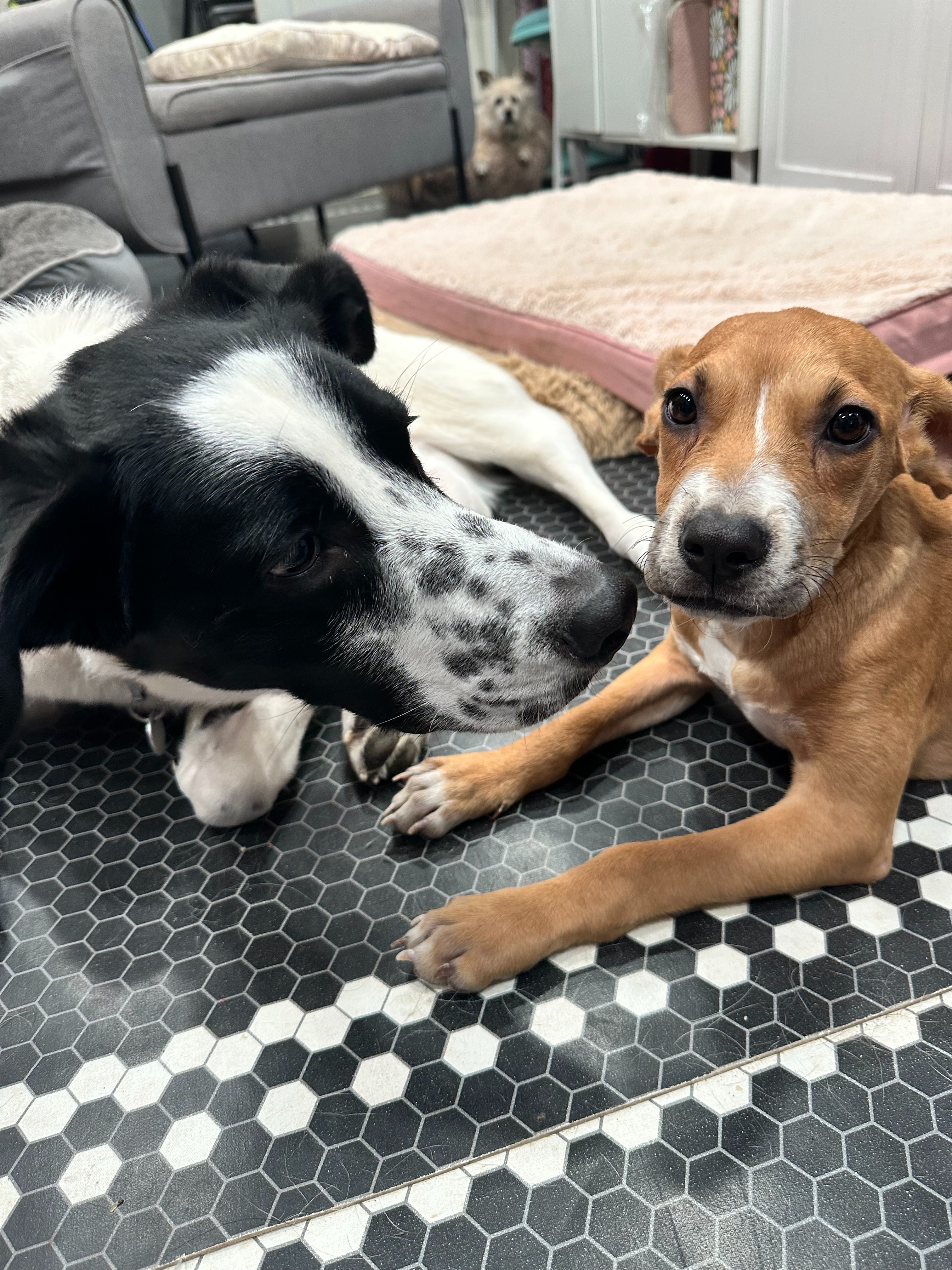 Tiny Tommy had also been hit. His injuries were severe, and veterinarians determined that his broken leg could not be saved. Amputation was recommended, and he bravely underwent surgery on December 1, 2025. He recovered well at first, had his stitches removed on December 19, and flew all the way to Colorado on December 20 to start the next chapter of his life. Upon arrival in Colorado, things were off to a great start - he particularly enjoyed his new foster siblings and their comfy beds!
