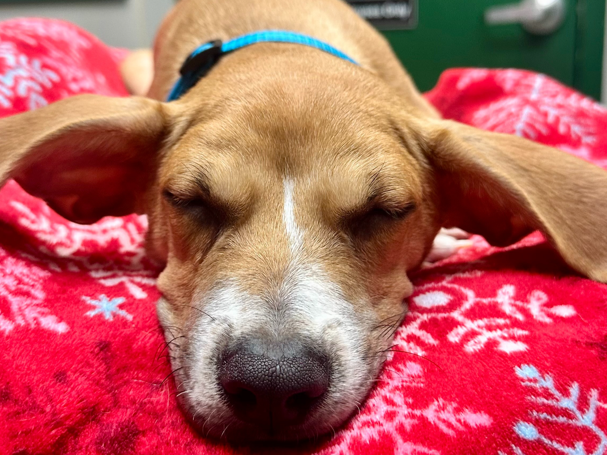 Tragically, on Christmas Day, Tommy’s incision began to reopen and seep fluid. We were so thankful that the people at Plum Creek Veterinary Services were able to get us in right away on December 26, where devastating news was discovered: Tommy was the victim of a botched amputation. Bones and bone fragments were left behind at the amputation site, including one sharp point that is causing him pain and preventing proper healing. He now urgently needs a second corrective surgery so he can heal fully and live without discomfort.