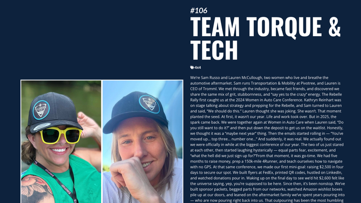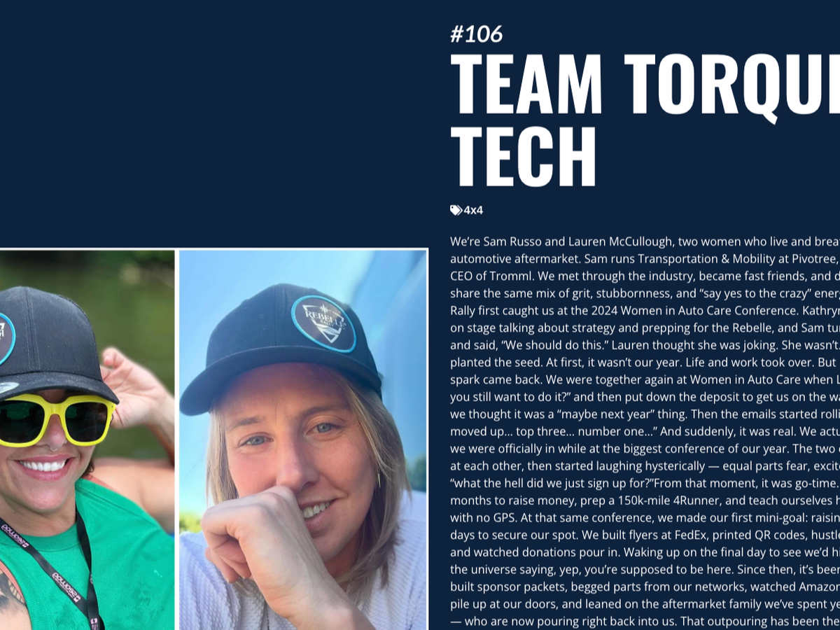 We’re Lauren and Sam — two women who spend most days talking AI, aftermarket, and how to drag dusty old systems into the future. So naturally, we signed up for the Rebelle Rally: an 8-day, no-GPS, off-road endurance adventure across the desert.