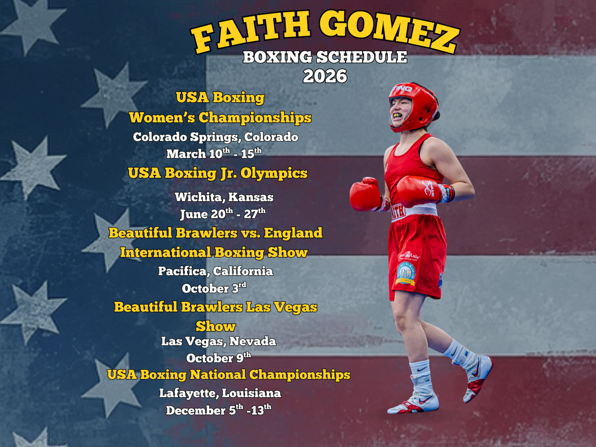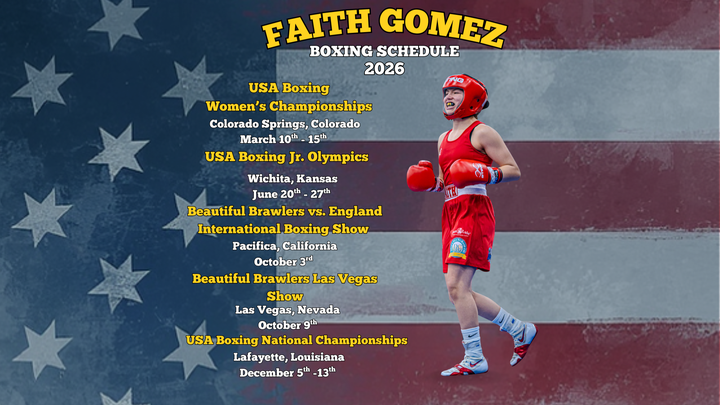 Faith Gomez, a 3-time USA Boxing National Champion, is gearing up for a busy 2026 season with competitions across the country. Her schedule includes: