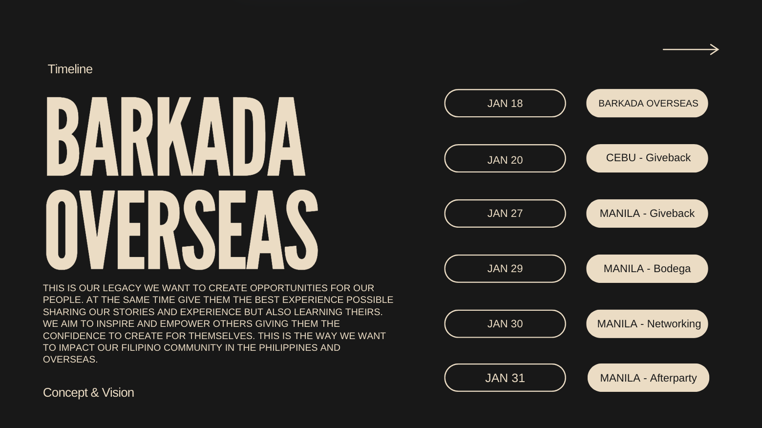 Now it’s our time to help. It’s called BARKADA OVERSEAS We are putting together a Philippines relief effort that consists of a concert where Fil-Am and Filipino artists can share the stage for a single purpose of uplifting and supporting the people. We are hosting two giveback programs, donating food, school supplies, clothes, medicine, toys, water, and whatever items are needed. We are bringing in Top Chefs to come and provide a foodie experience, sharing the kitchen with chefs from the Philippines we want to work with the locals and the people who are also moving the needle for the culture in the Philippines, it’s all about working together and doing what’s right, our goal is to leave an impact and unforgettable experience that will hopefully empower educate and inspire others to do the same. We need to lead by example and at the end of everything we’re going to celebrate each other.