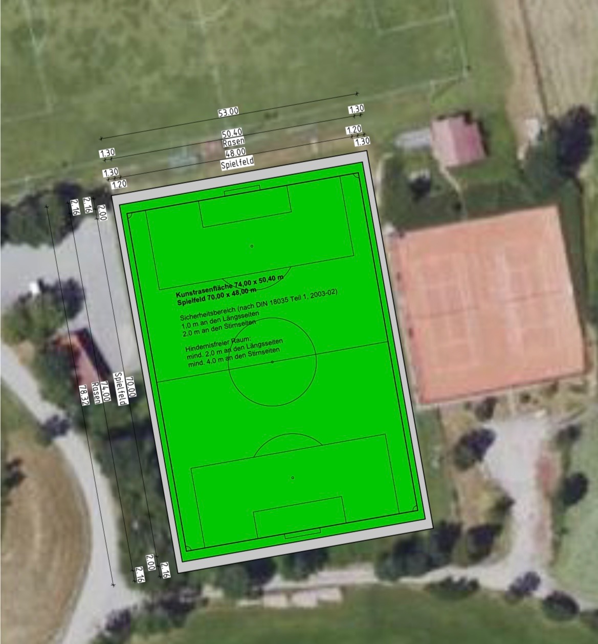 Wir wollen den bestehenden Trainingsplatz in einen hochmodernen Kunstrasenplatz umbauen. Da die Flutlichtanlage bereits vorhanden ist, schaffen wir so optimale, ganzjährige Trainingsbedingungen für alle Altersklassen. Keine wetterbedingten Ausfälle mehr, sicherer Untergrund und eine nachhaltige Investition in die Zukunft unseres Vereins! Unser Ziel ist die Umsetzung bereits ab Juni dieses Jahres.