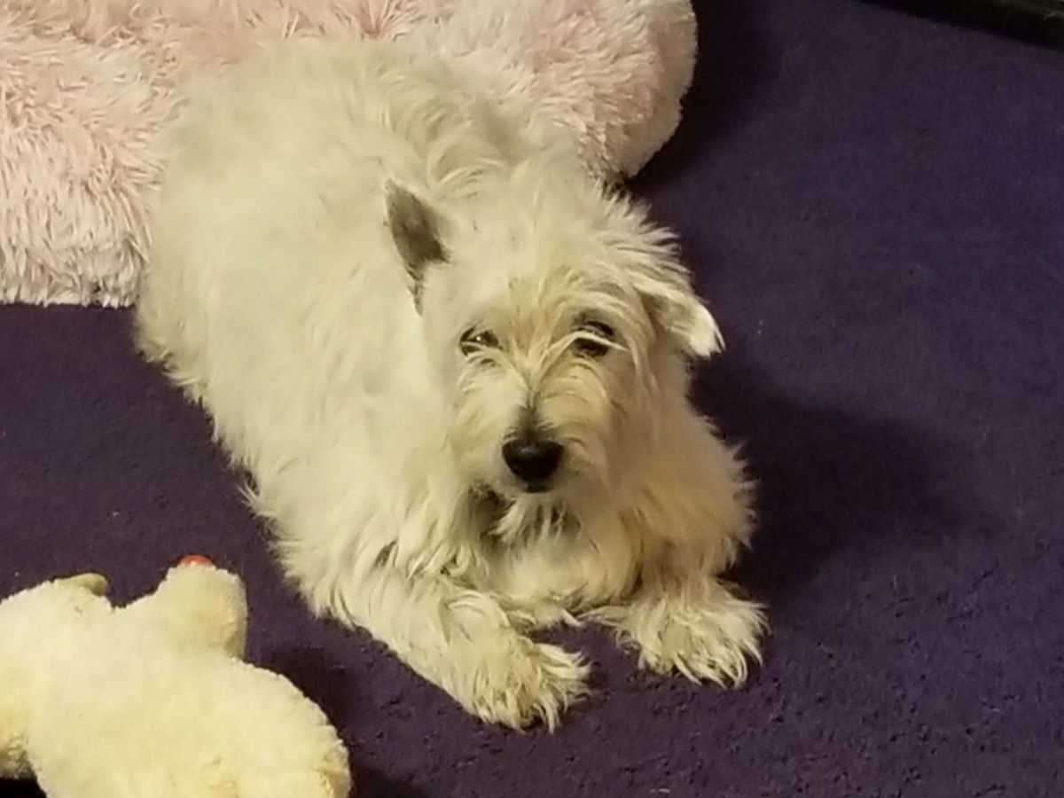 Baylee is a 13 year old Westie. She came to me in July 2019 as a foster girl after her owner passed away from cancer. Baylee's skin is terribly infected but is finally coming along, slowly, after many dogtor appointments and help from a dermatologist. Since she arrived she has had TECA's (Total Ear Canal Ablations) done on both ears due the horrible infections in them. She was already deaf before the surgeries so removing her ear canals was to give her relief from the terrible discomfort she was in. She has been fighting off a very angry growth on her head but it is getting larger and needs to he removed as soon as possible. She has 3 other growth's that will be removed at the same time in order to save money and also, and more importantly, so she only has one one recovery period. Baylee has a new sister, Lily, she came to us in November after her owner also passed from cancer. They bonded immediately! They both love to play together and individually!