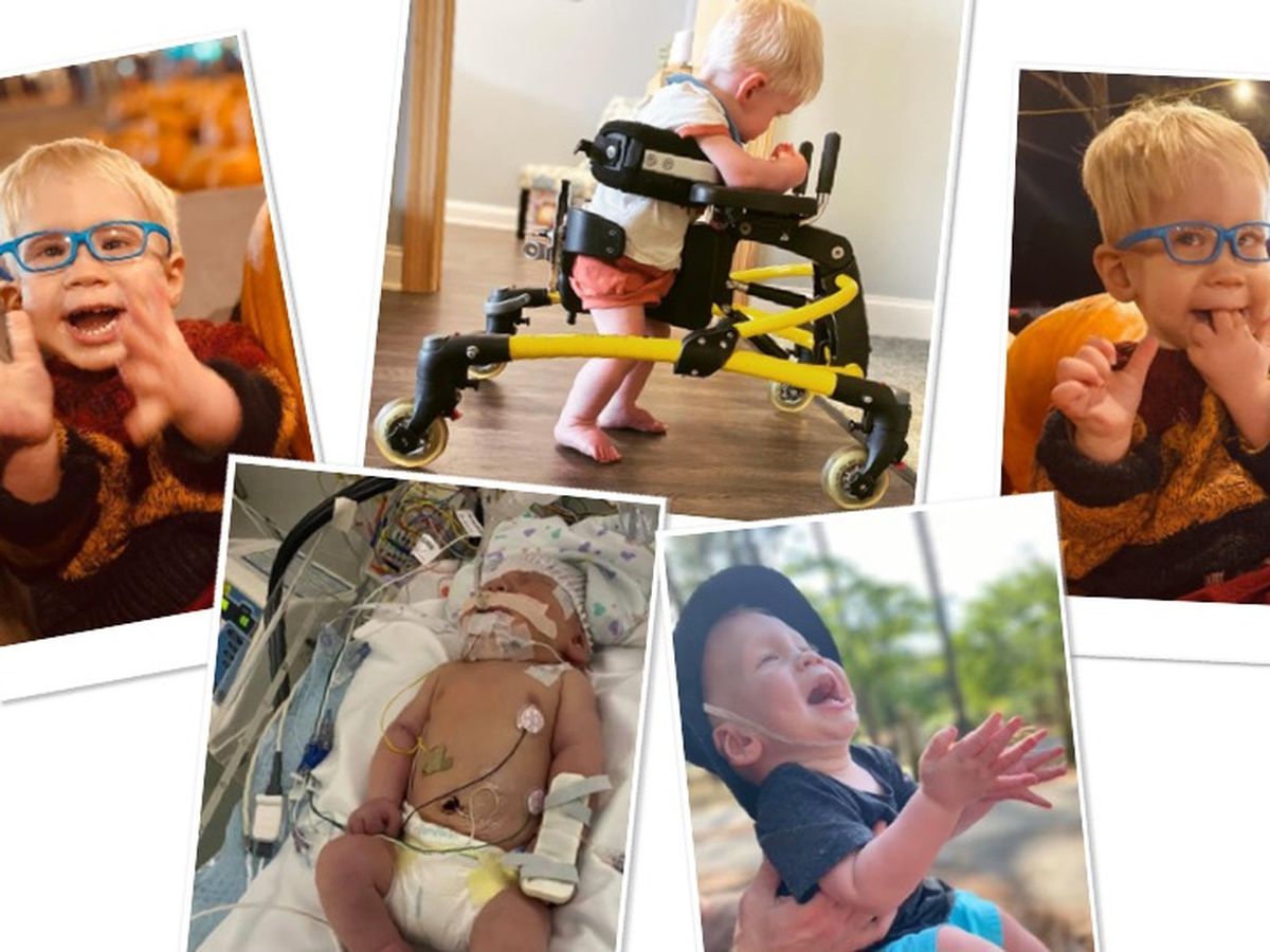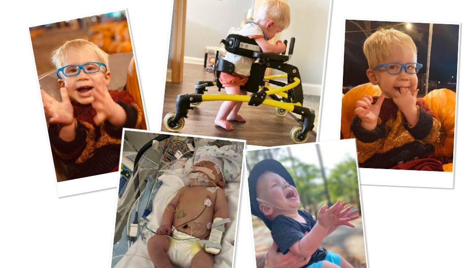 At birth, Baylor had shoulder dystocia, brain bleeds, and a hypoxic ischemic event. He was sedated and intubated, and had to be cooled in the NICU in order for his fragile little body to slowly heal from the trauma. Since being discharged from the NICU, he has been followed by neurosurgery, neurology, ophthalmology, audiology, ENT, cardiology, developmental clinic, feeding clinic, genetics, and electrophysiology. After extensive testing, they are still unsure of what all is going on with him. However, as of now, he has been officially diagnosed with Ocular Albinism, HIE, global developmental delays, low tone, and ventriculomegaly. Baylor has also developed one cyst in his brain and another cyst between the nasopharynx and oral pharynx (these of which they are waiting on possible surgery needs). They are waiting on more time and testing for definitive answers on hearing loss as well. Baylor is receiving physical therapy, occupational therapy, vision therapy, and feeding therapy weekly. At almost 2 years old, Baylor is unable to crawl, stand, walk, feed himself (he only eats purées), talk, and limits his arm movements. He is currently being evaluated for speech therapy. Baylor has been getting MRIs every three months to track the fluid in his brain to see if surgery is necessary. With Baylor’s last MRI and the development of a new cyst, his neurosurgeon is worried that they are missing something and wants to admit Baylor in the pediatric ICU in Chapel Hill for brain monitoring. Baylor’s procedure will be on 12/21/21. Depending on the results from the monitoring, they may go ahead and put a shunt in.