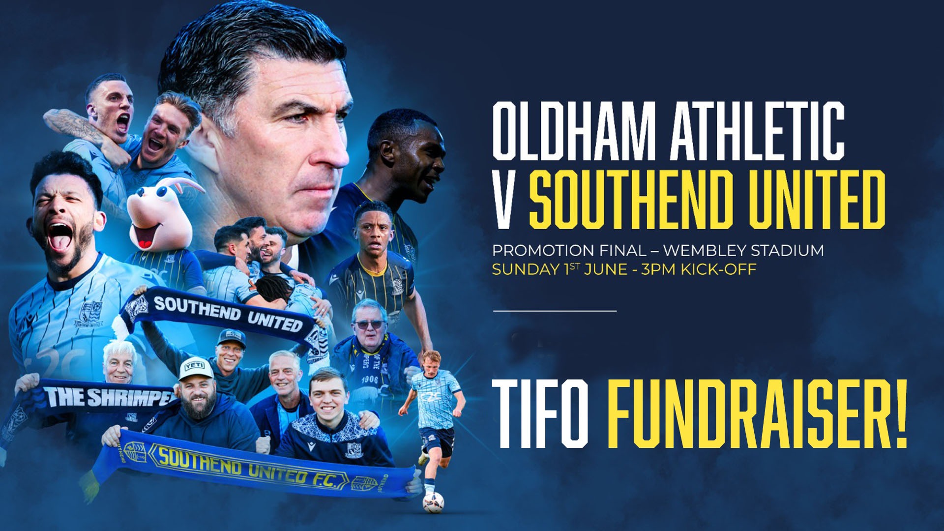We’re calling on the Shrimpers fanbase to help to create a bold, unforgettable TIFO that will spread across the lower tier behind the East end of Wembley where Shrimpers supporters will be housed for the Vanarama National League Promotion Final this Sunday against Oldham Athletic.