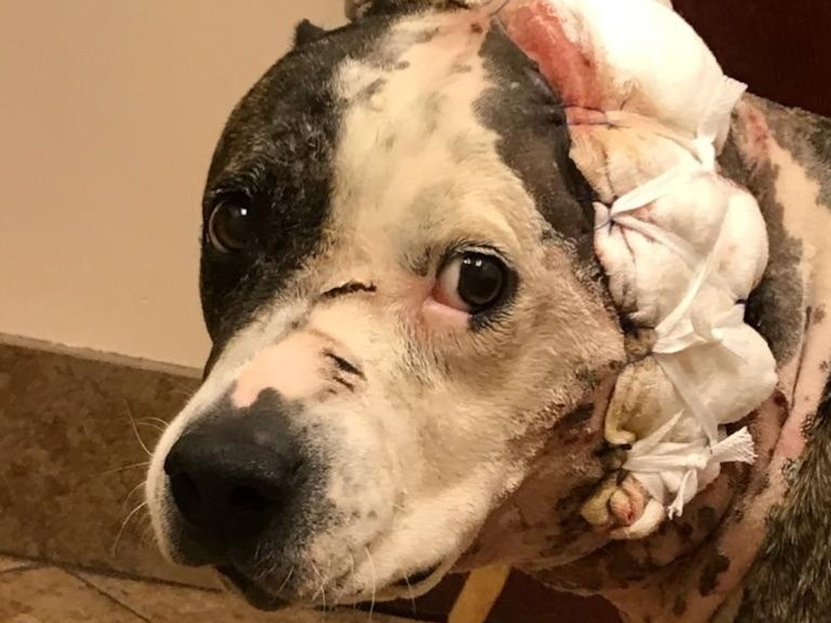 Meet Bella, we think she's about 6 years old. Someone tied her to a pole at the grocery store and abandoned her a few years ago. We took her home and loved her ever since . Unfortunately the other day she got her head stuck in the fence and some neighborhood dogs ripped her face up pretty bad . She has been in the hospital ever since and so far has lost her left ear . After her wounds heal from all the infection she will have to have a surgery to close off her ear and replace some skin that she is missing from her face . We're trying our best but cannot afford the surgery , we love her so much and want to keep her for many more years. Please find it in your heart to donate and share this page so we can get our Bella back . Anything will help.