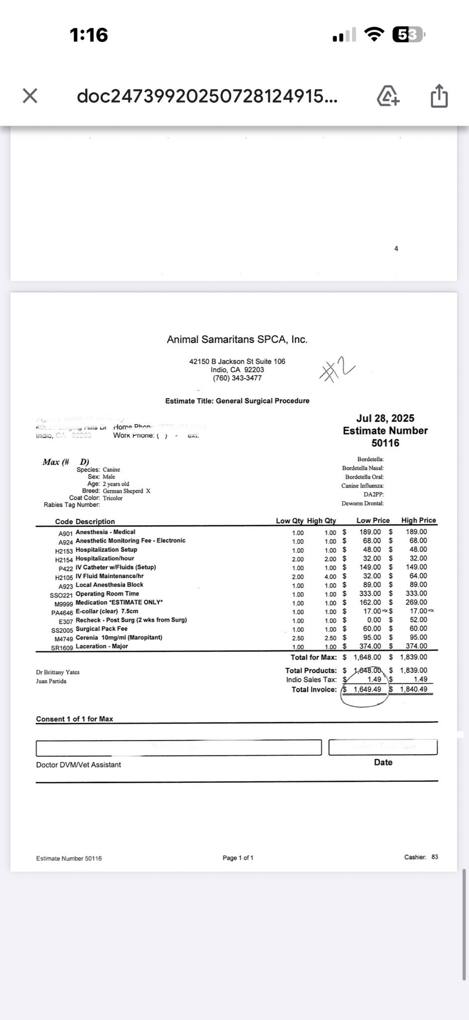 Max got into a fight with another dog and suffered a serious injury that requires surgery. The estimate for the procedure is $1,649–$1,840 (see attached vet bill). The heartbreaking reality is that the vet won’t move forward with surgery until the funds are raised — and Jeff, already stretched beyond his limits, simply can’t cover it on his own.
