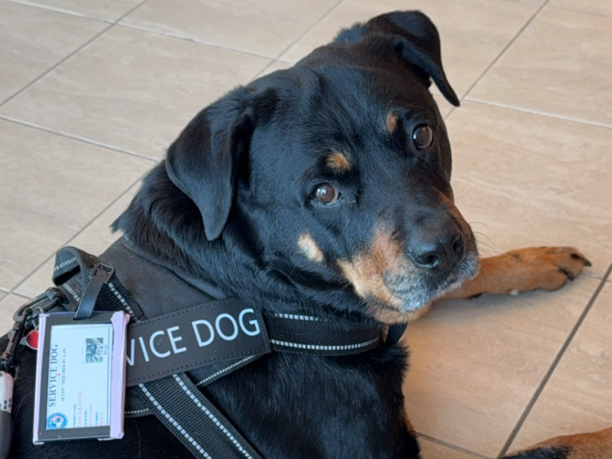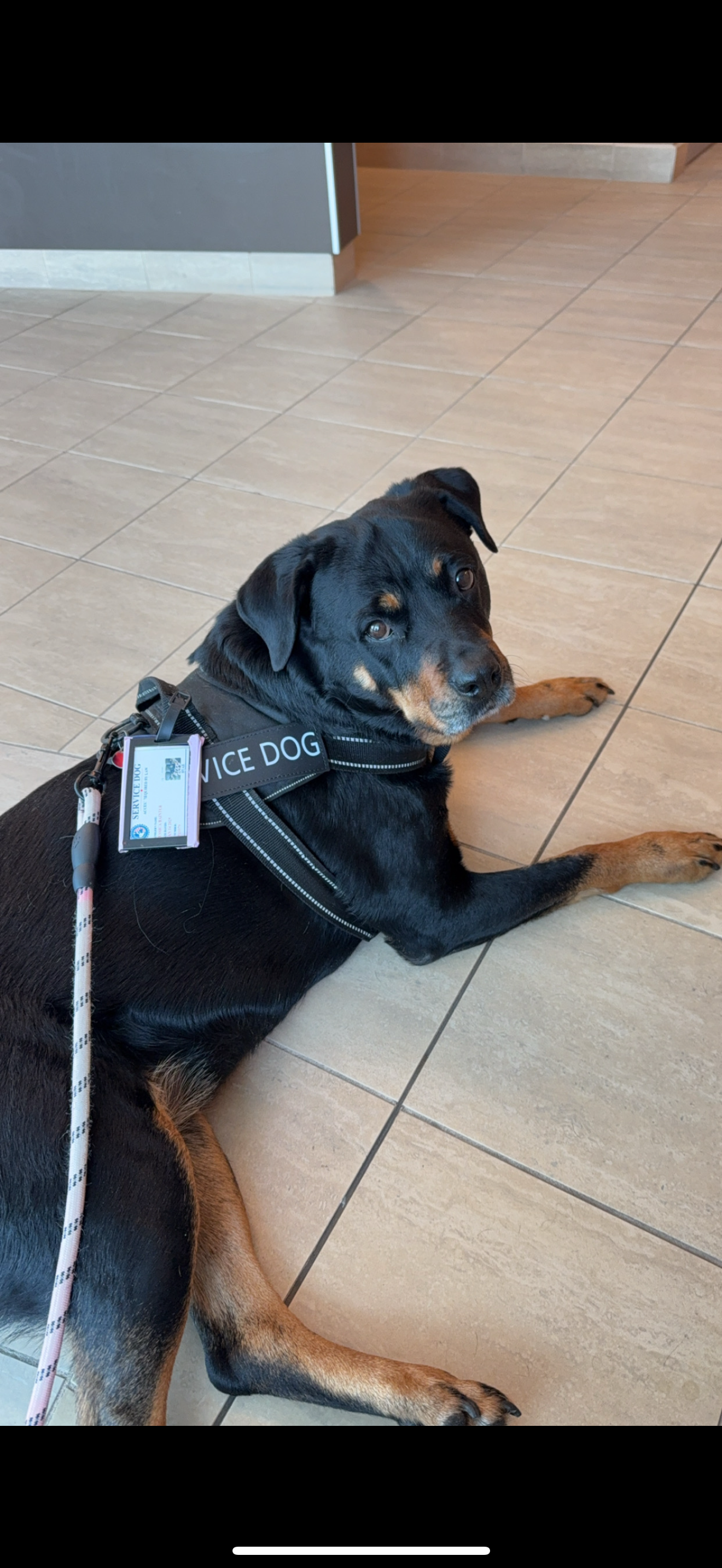 Bear goes to all of my appointments with me. She makes me feel safe, loved, protected, and gives me a purpose when I thought for a long time I had no purpose anymore. She is by my side every second of every day. She is the sweetest, most loyal girl. She deserves a pain-free life when she puts so much into making my life better.