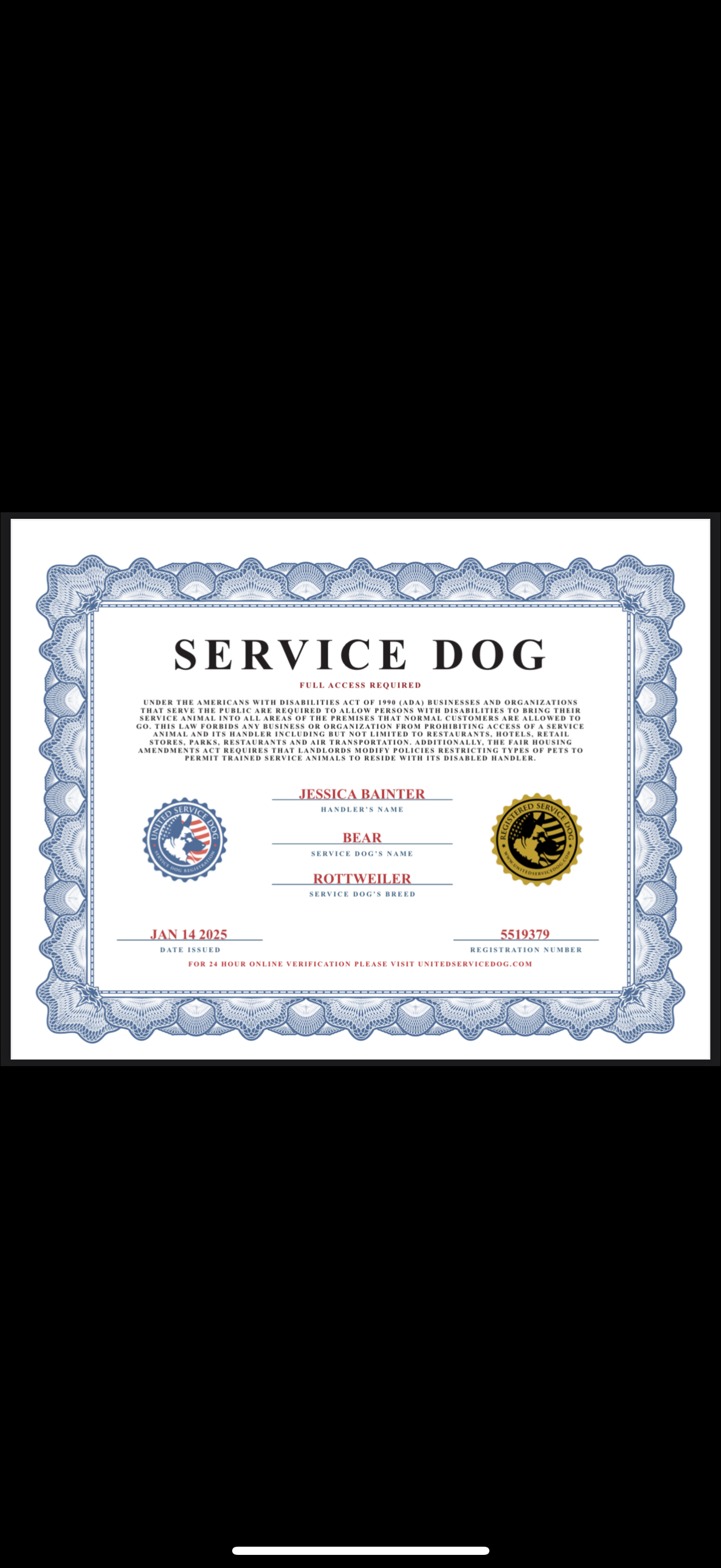 My name is Jessica Bainter and Bear is my service dog. She is my best friend and companion that keeps me going during my complex health journey and being disabled. She alerts me when my glucose is going low even before my monitor alarms go off. She alerts me when I’m going to faint before I fall down and sits on my lap when I sit on the ground until it passes. She has filled a void in my life in so many ways. She gave me my mental health back when I was in a very low place.